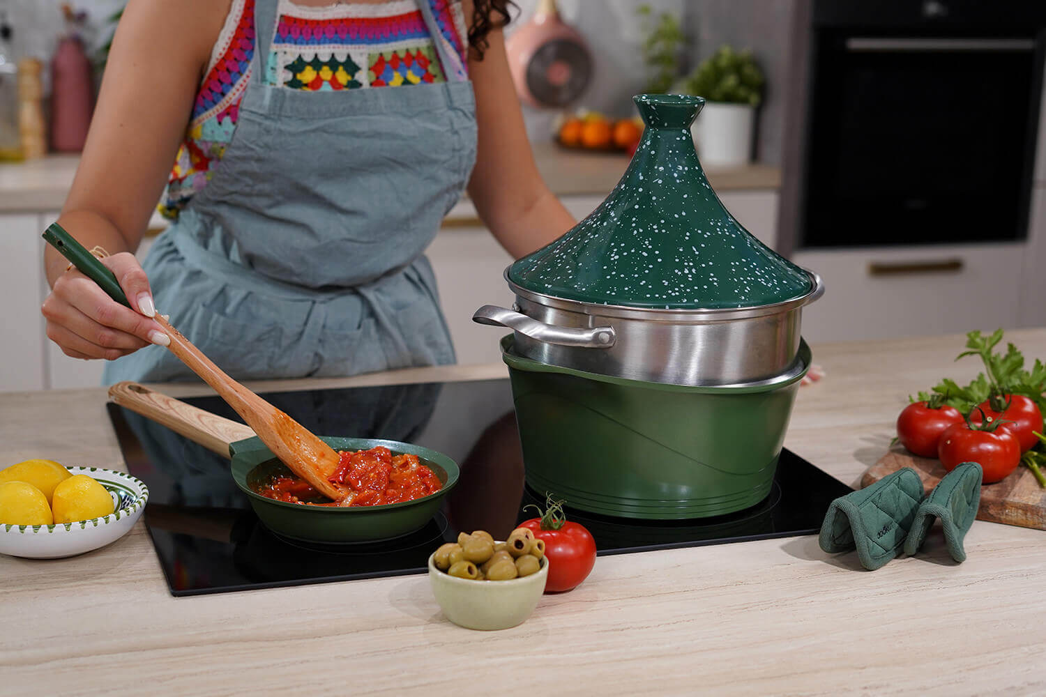 L’utilisation du couvercle tajine Cookut est un jeu d’enfant : il vous suffit simplement de le poser sur L’Incroyable Cocotte, d'ajouter vos ingrédients, de couvrir et de laisser mijoter à feu doux. Vous obtenez des plats savoureux sans effort.
