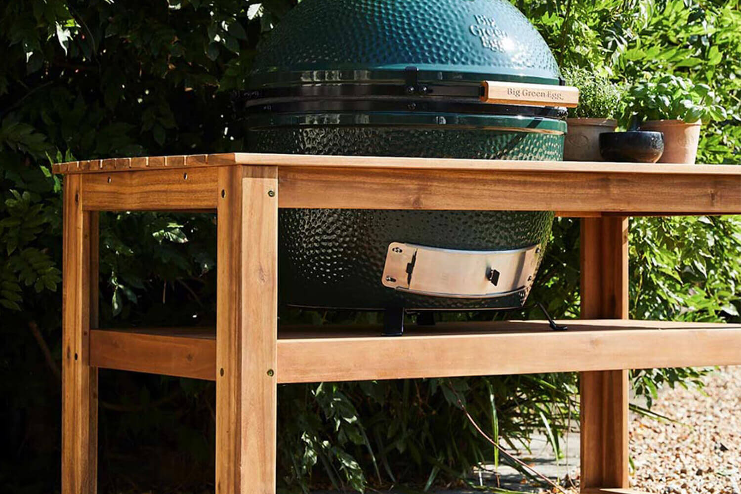 Table d'accueil design et pratique pour barbecue Big Green Egg
