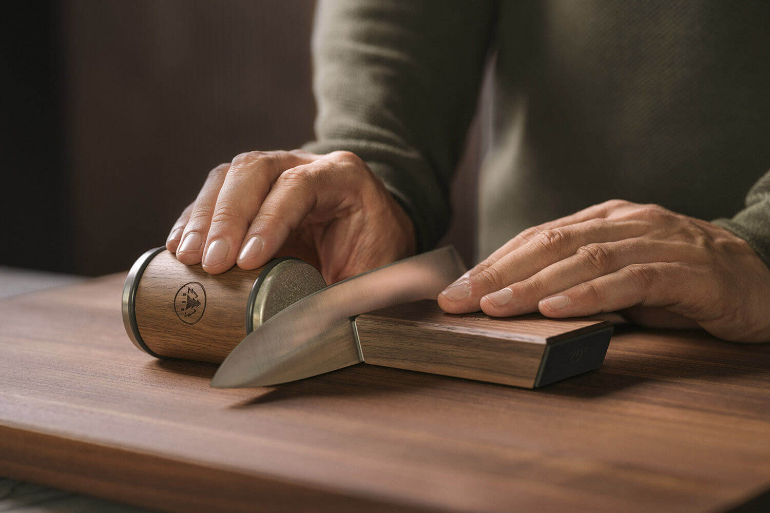 Conçu en bois de noyer massif, l'aiguiseur manuel HORL® 3 allie élégance et durabilité. Le noyer est un essence résistante et robustes, elle garantit une longue durée de vie à cet aiguiseur de couteaux de qualité. Doté de deux disques d’aiguisage interchangeables situés chacun à une extrémité de l’outil, il vous offre un soin complet pour vos lames.