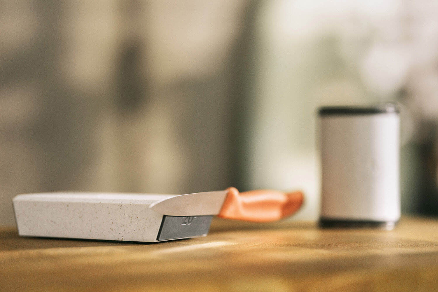 La structure de l'aiguiseur est fabriquée en plastique recyclé issu des océans. HORL® travaille avec l'association suisse #tide® Ocean, son partenaire qui œuvre en transformant le plastique qu'elle récupère en granulés. Ces granulés deviennent ainsi un matériau robuste haut de gamme. Avec une conception monobloc, l'aiguiseur manuel est un accessoire robuste, écologique et durable.