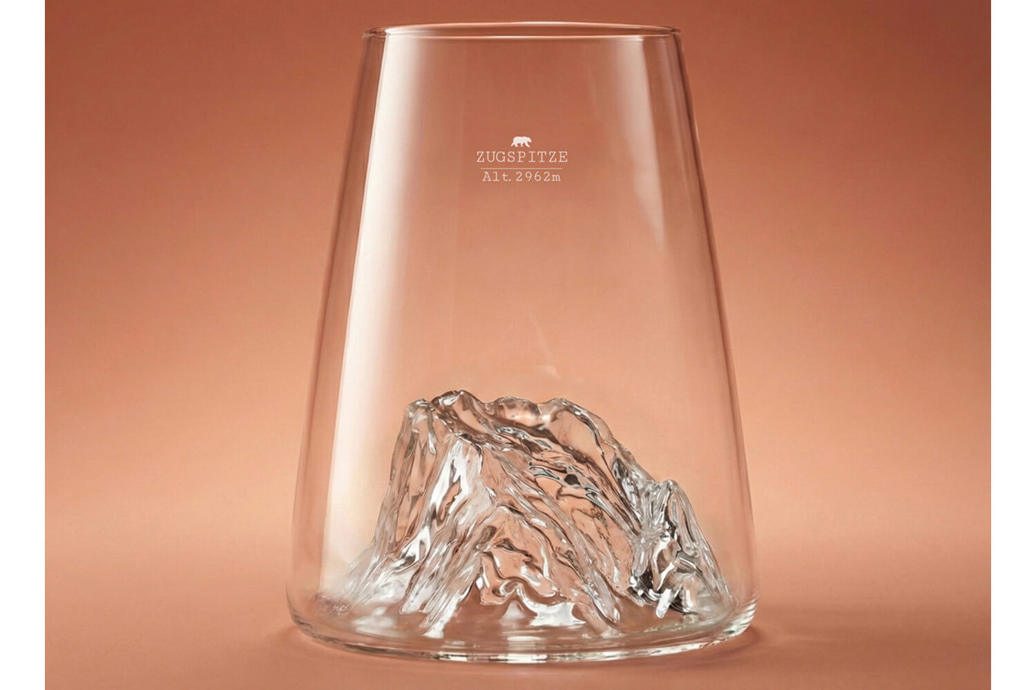 Ce verre design se distingue par son relief topographique minutieusement sculpté, reproduisant les courbes majestueuses du Zugspitze. Chaque boisson devient une aventure, vous transportant au sommet de l'Allemagne pour une expérience sensorielle inédite.