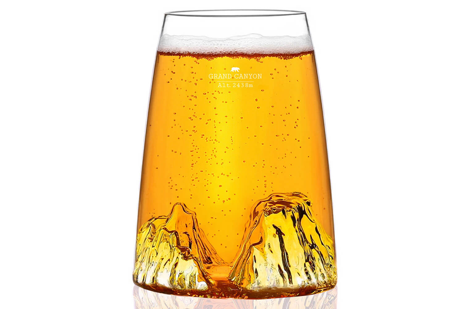 Chaque verre Alaskan Maker présente un relief intérieur détaillé du Grand Canyon, offrant une expérience visuelle captivante. La forme tulipe du verre n'est pas seulement esthétique ; elle est conçue pour concentrer les arômes, enrichissant ainsi chaque gorgée.