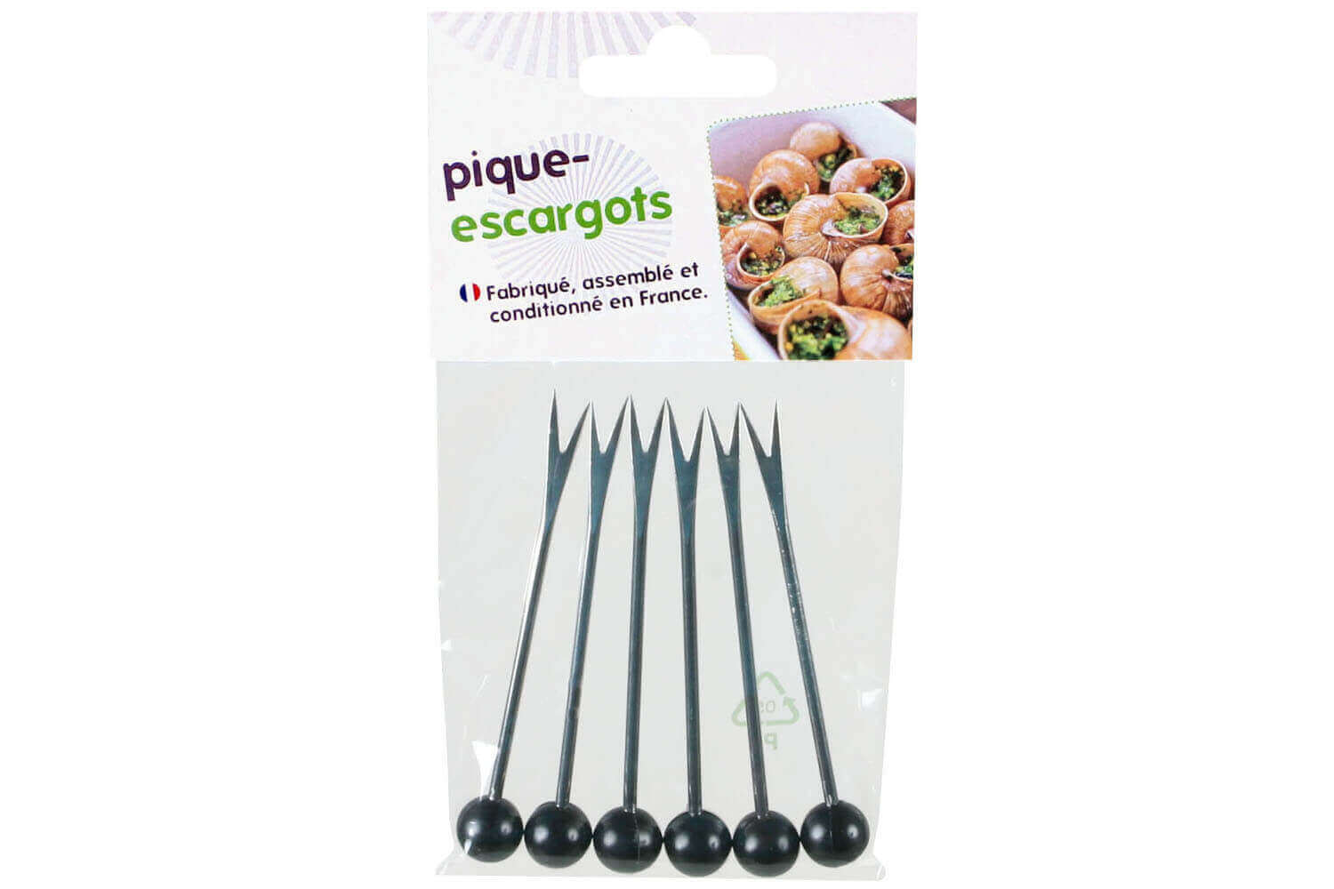 Les piques-escargots sont vendus par 6 et sont faciles à associer à votre service à escargots. Fabriqués en France, ils se lavent aisément à la main ou au lave-vaisselle.
