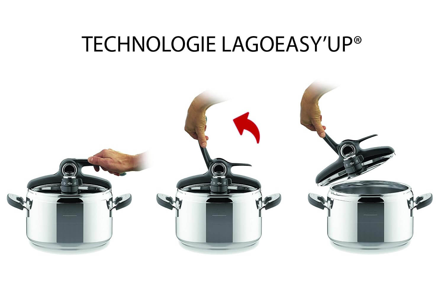 Lagostina vient à bout de la lutte avec les couvercles d'autocuiseurs récalcitrants ! Le système Lagoeasy’up® vous permet d’ouvrir l’autocuiseur Domina facilement d’une seule main. Une innovation qui change la donne en cuisine !
