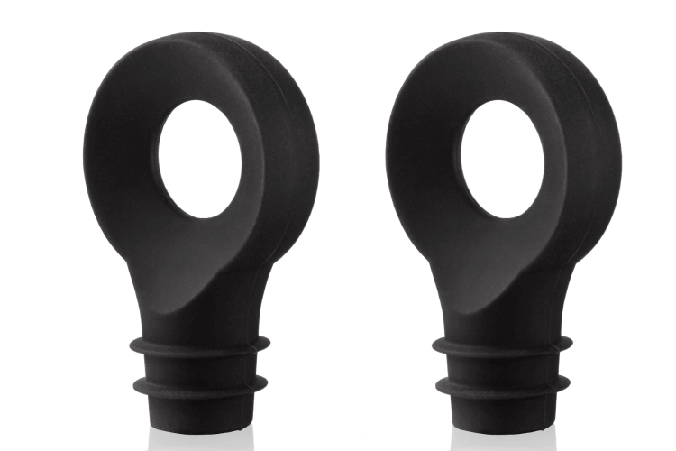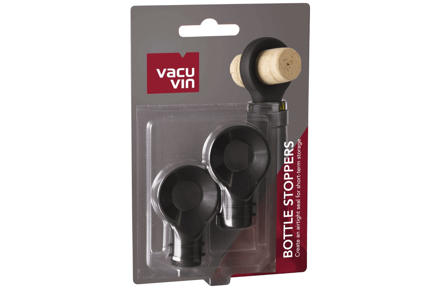 Fermez et ouvrez votre bouteille de vin sans difficulté avec le set de 2 bouchons arrondis Vacu vin noir !