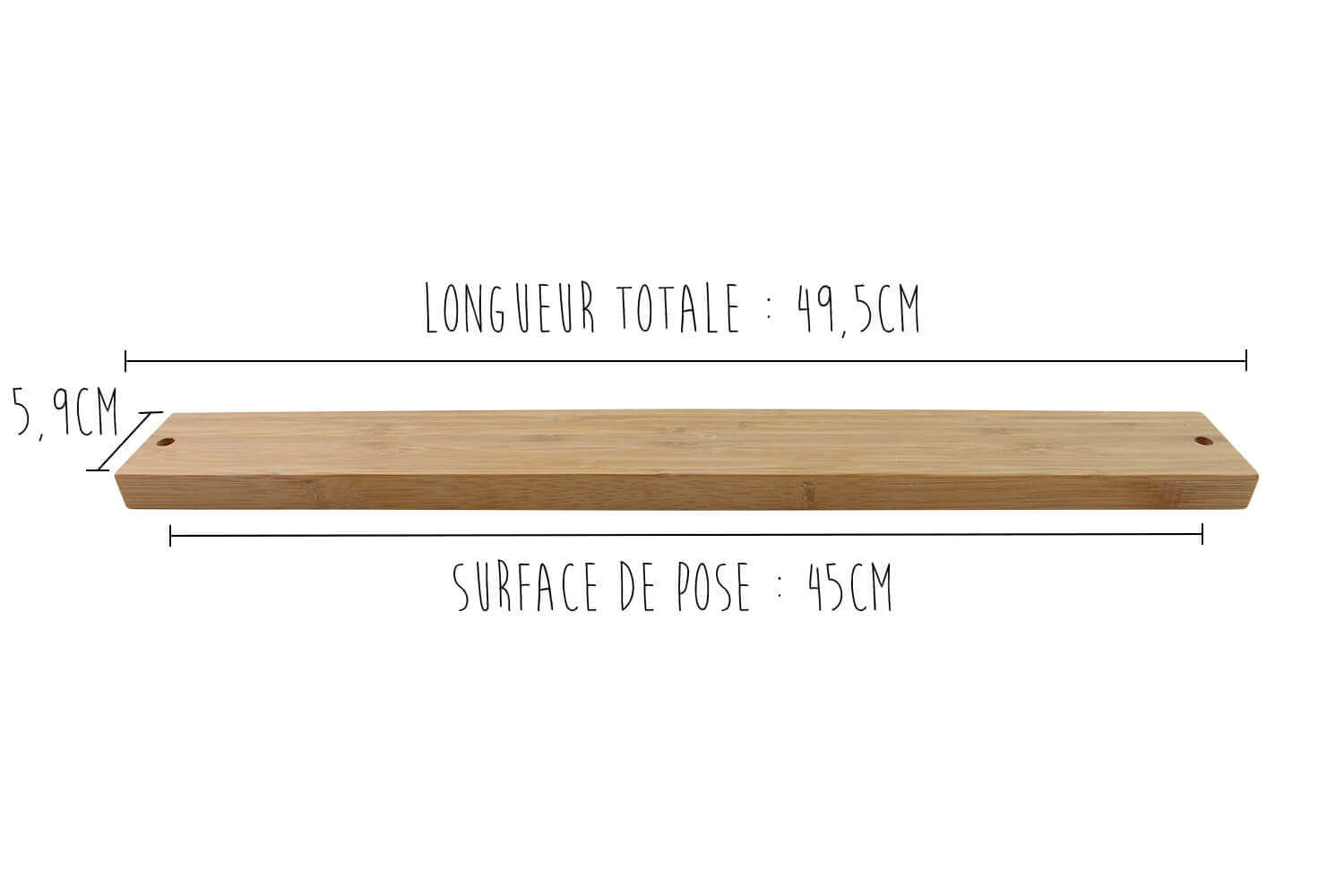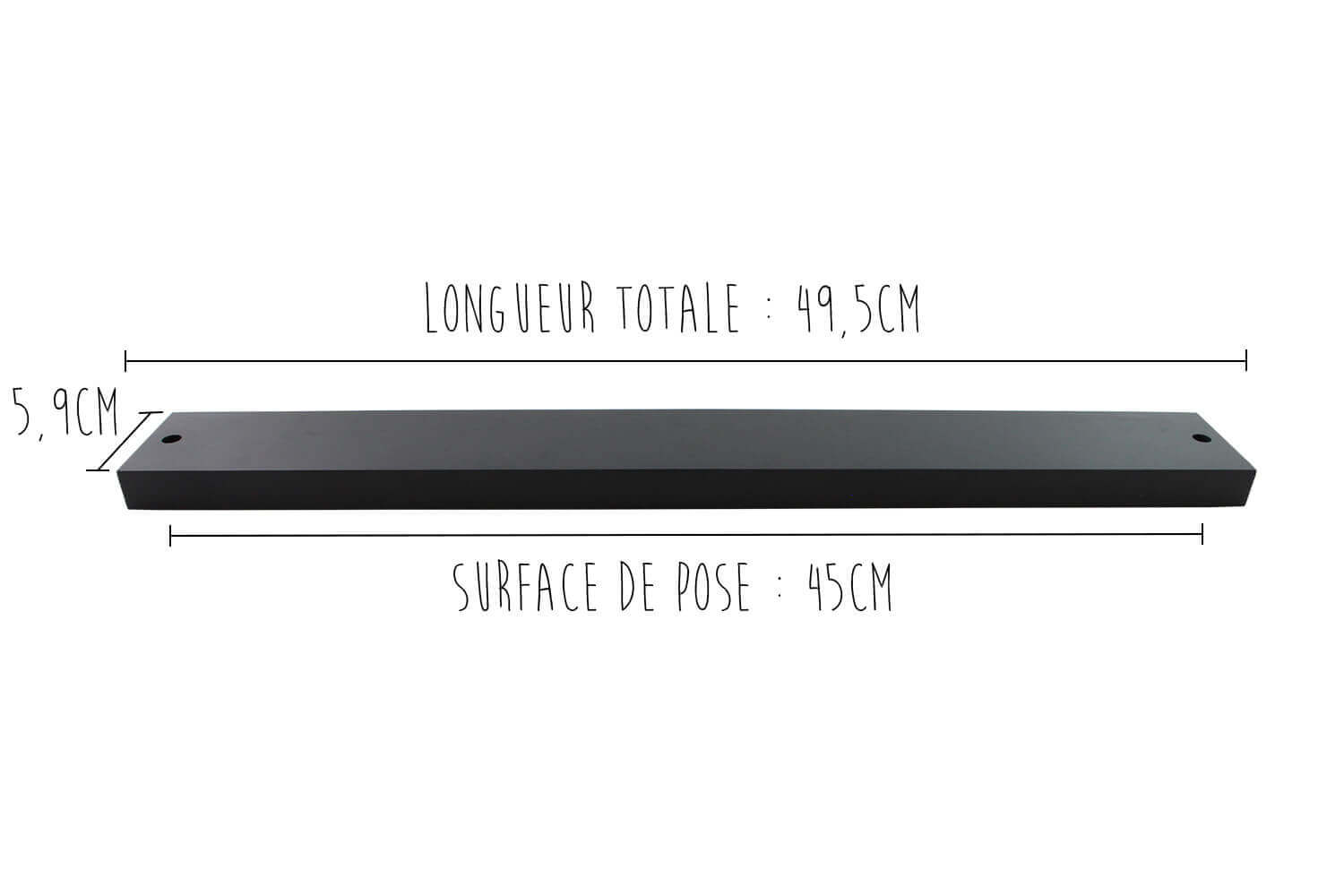 Surface de pose : 45 cm x 59 mm (longueur totale 49.5cm)