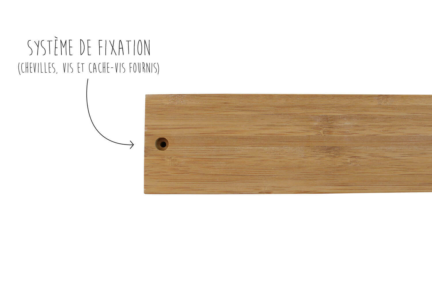 Système de fixation fourni : chevilles, vis, cache-vis
