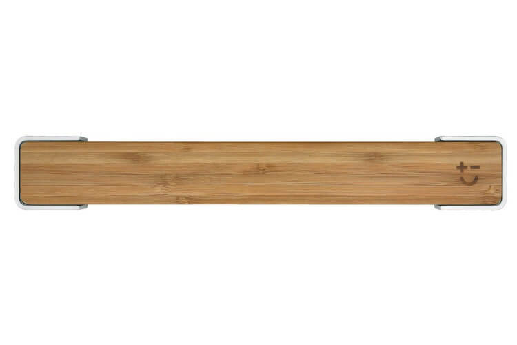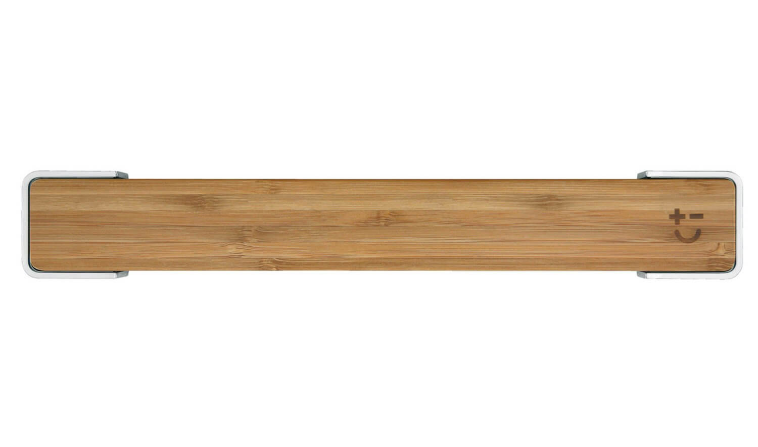 La barre est fabriquée en bois de bambou ou de noyer selon votre choix, des essences appréciées dans le milieu de la cuisine pour leur résistance et leur durabilité. On apprécie la touche de modernité avec les caches polis de couleur aluminium. Les aimants très puissants sont cachés à l'intérieur du bois, ainsi vos lames ne sont pas en contact direct avec l'aimant, elles ne seront donc pas marquées par le métal. Le contact avec le bois est doux et ne les abîmera pas. Cette barre en bois s'entretient facilement avec un coup d'éponge si nécessaire.