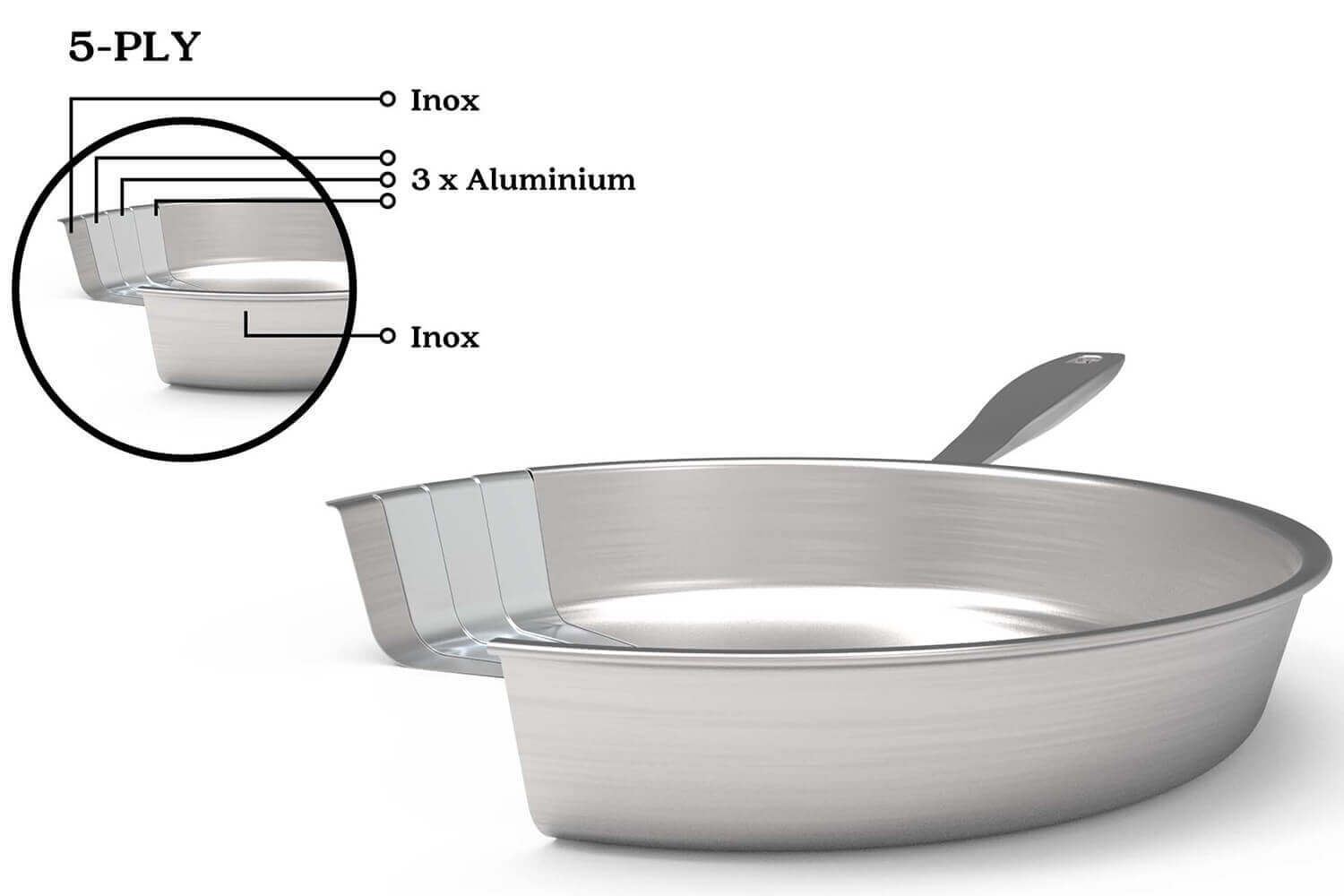 Conception Multiply : inox 18/10 - 3 couches d'alu - inox 18/10