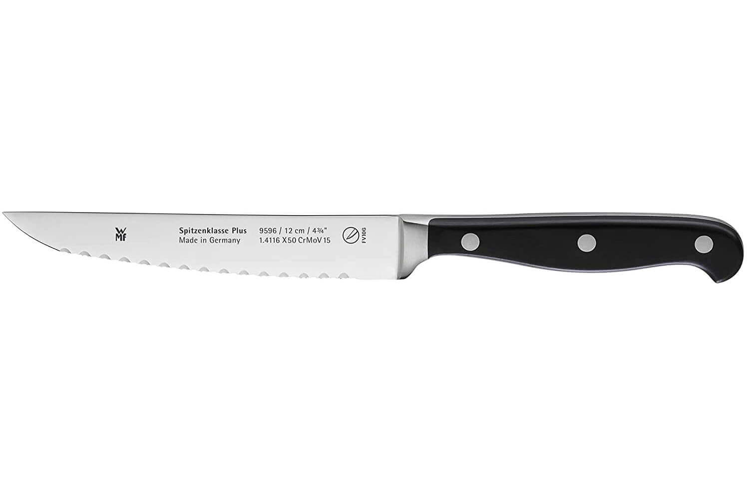 Chaque couteau dispose d'une lame en acier X50CrMoV15. Cet alliage est composé d'environ 0,5% de carbone qui a pour but de solidifier la lame. 15% de chrome entrent aussi dans la composition de cet acier et lui donnent son caractère inoxydable. Du molybdène vient renforcer la solidité et l'inoxydabilité de la lame. Enfin, du vanadium complète l'acier pour lui permettre de résister aux éventuels chocs.