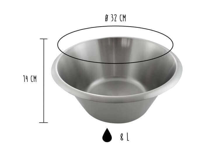 De diamètre 32cm et de contenance 8L, cette bassine de cuisine grande capacité vous sera nécessaire à la réalisation des recettes pour lesquelles une grande quantité d'appareil est indispensable. Ainsi, vous pourrez préparer en une seule fois des pâtisseries pour tous vos clients !