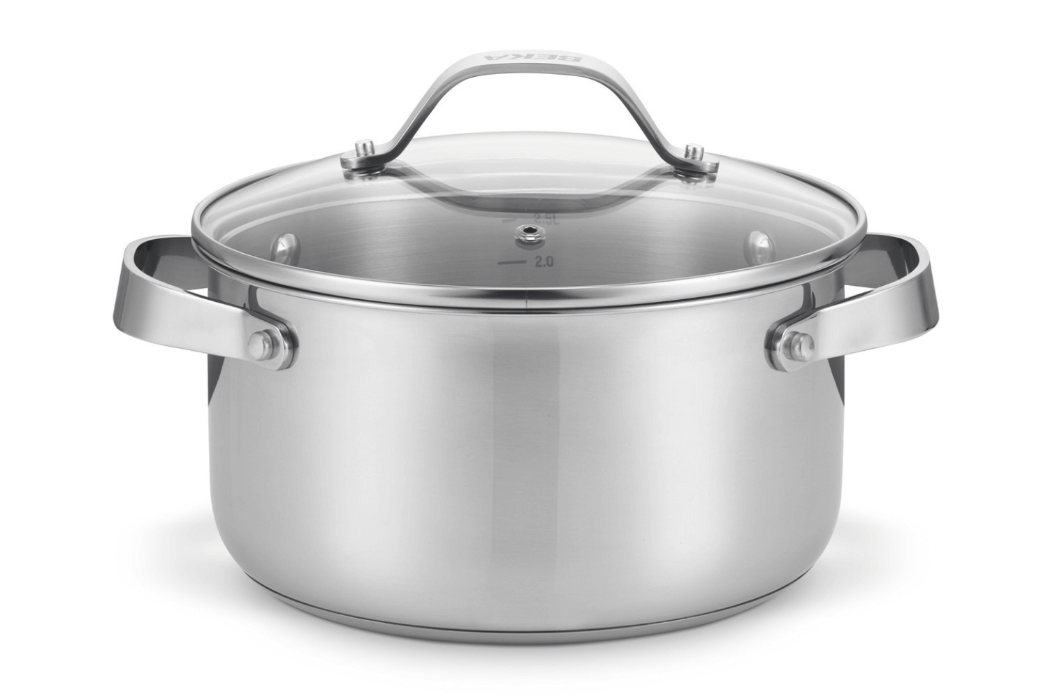 Cet ustensile Beka est doté d'un corps en acier inox recyclé certifié RCS et de deux anses en acier inoxydable. Cela le rend à la fois solide, durable et écologique. Son couvercle, quant à lui, est en verre transparent, vous permettant de voir son contenu aisément. Celui-ci est aussi muni d'un orifice de ventilation, lassant la vapeur s'échapper, et évitant les clapotements et le débordement.