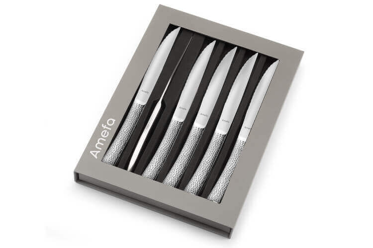 Les couteaux disposent d'une lame en acier inoxydable pour une action anti-corrosion qui permet de les utiliser quotidiennement et pour longtemps. La lame est micro-dentée pour un tranchant efficace et sans effort sur vos viandes.
