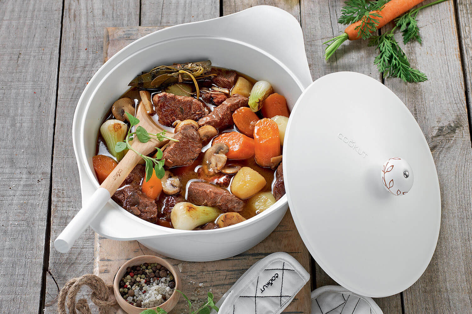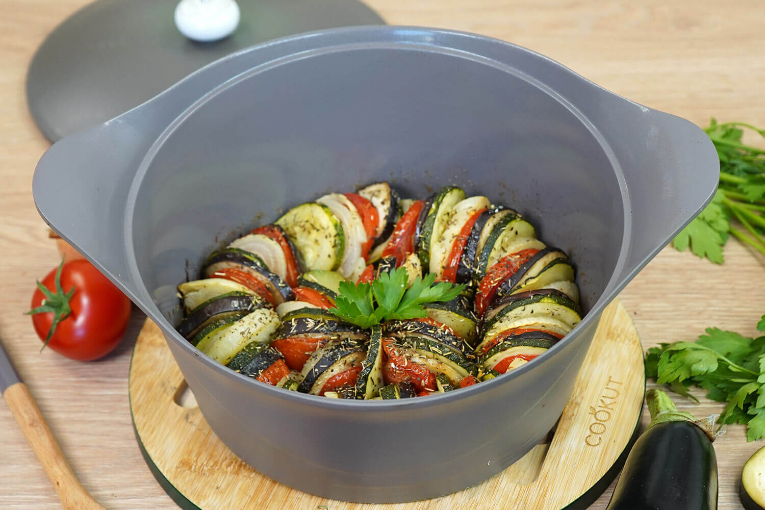 Grâce à L'Incroyable Cocotte de Cookut, réhaussez la préparation et la dégustation de vos plats ! Polyvalente, elle vous offre 8 modes de cuisson : mijoter, vapeur, bouillir, frire, rissoler, bain-marie, pain et tajine.