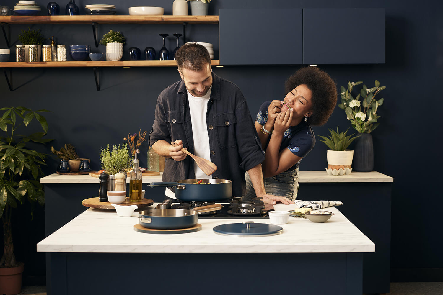 Mais Cookut ne s’arrête pas là : la poêle inox est renforcée en cuivre, pour booster la réactivité thermique, et en titane, pour prolonger sa durabilité dans le temps. Ainsi, la poêle Cookut La Merveilleuse est capable de tout faire, sans revêtement antiadhésif. Elle est garantie sans PFAS ni PFOA, et sa surface devient naturellement anti-adhérente à bonne température, sans ajout de produit. Le test de la goutte vous guidera vers une cuisson sans accroche.