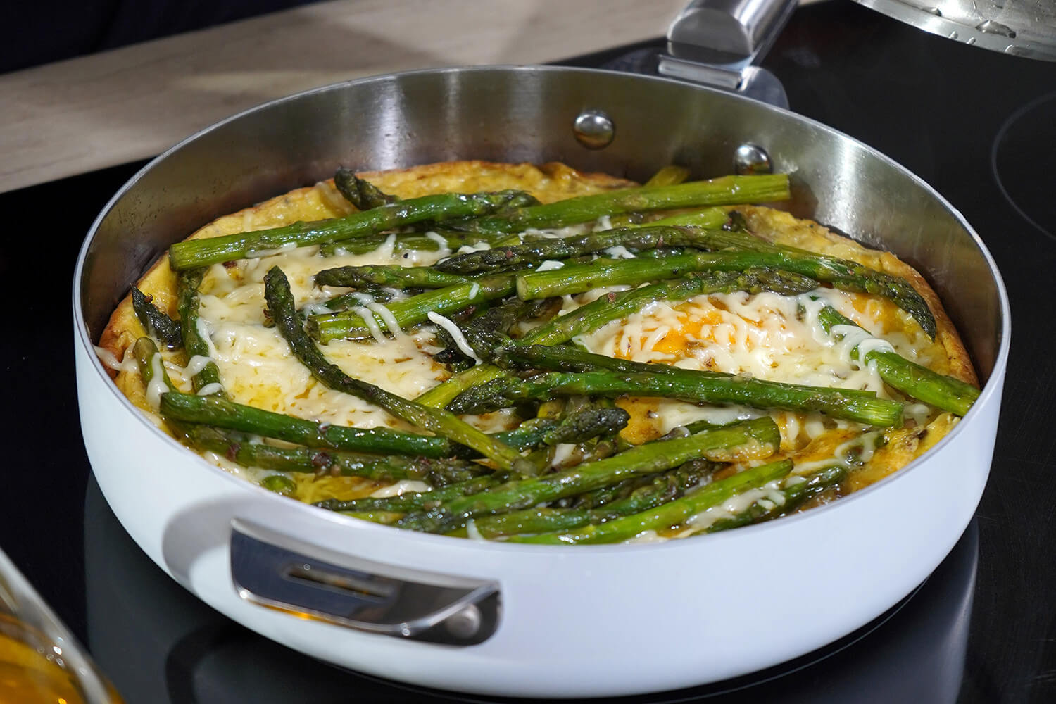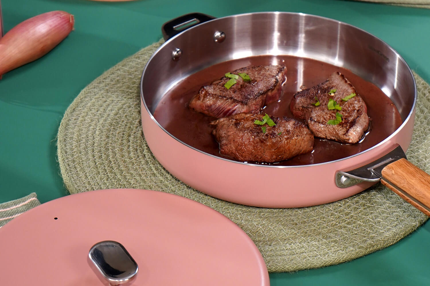 Avec ses dimensions utiles de 24 x 5 cm et son volume de 1,3 litre, cette poêle a un format passe-partout idéal pour des portions de 2 à 4 personnes. Elle vous permet de réussir facilement :