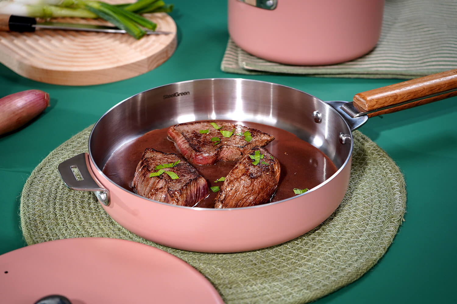 La poêle Cookut La Merveilleuse 24cm est bien plus qu’un simple ustensile : c’est l’entrée dans une nouvelle ère de la cuisson inox ! Grâce à son acier inoxydable Steel Green® innovant, elle garantit des performances culinaires dignes des pros tout en respectant la santé et l’environnement. Et avec ses coloris vitaminés, elle sublime vos fourneaux aussi bien que votre table !