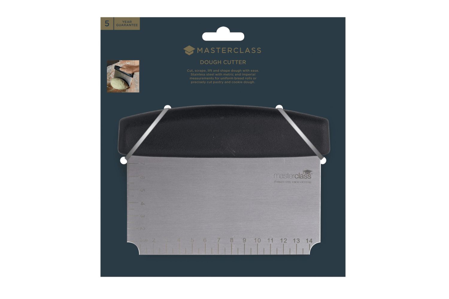 Grâce à ce coupe-pâte MasterClass, coupez et divisez vos pâtes à biscuit et autres délices avec simplicité et précision ! Sa lame en acier inoxydable de premier choix est à la fois robuste, durable, et compatible au contact alimentaire. Étant tranchante et dotée de mesures claires gravées au laser, cette lame vous aide à avoir des portions égales pour préparer différentes gourmandises à partager avec vos proches.
