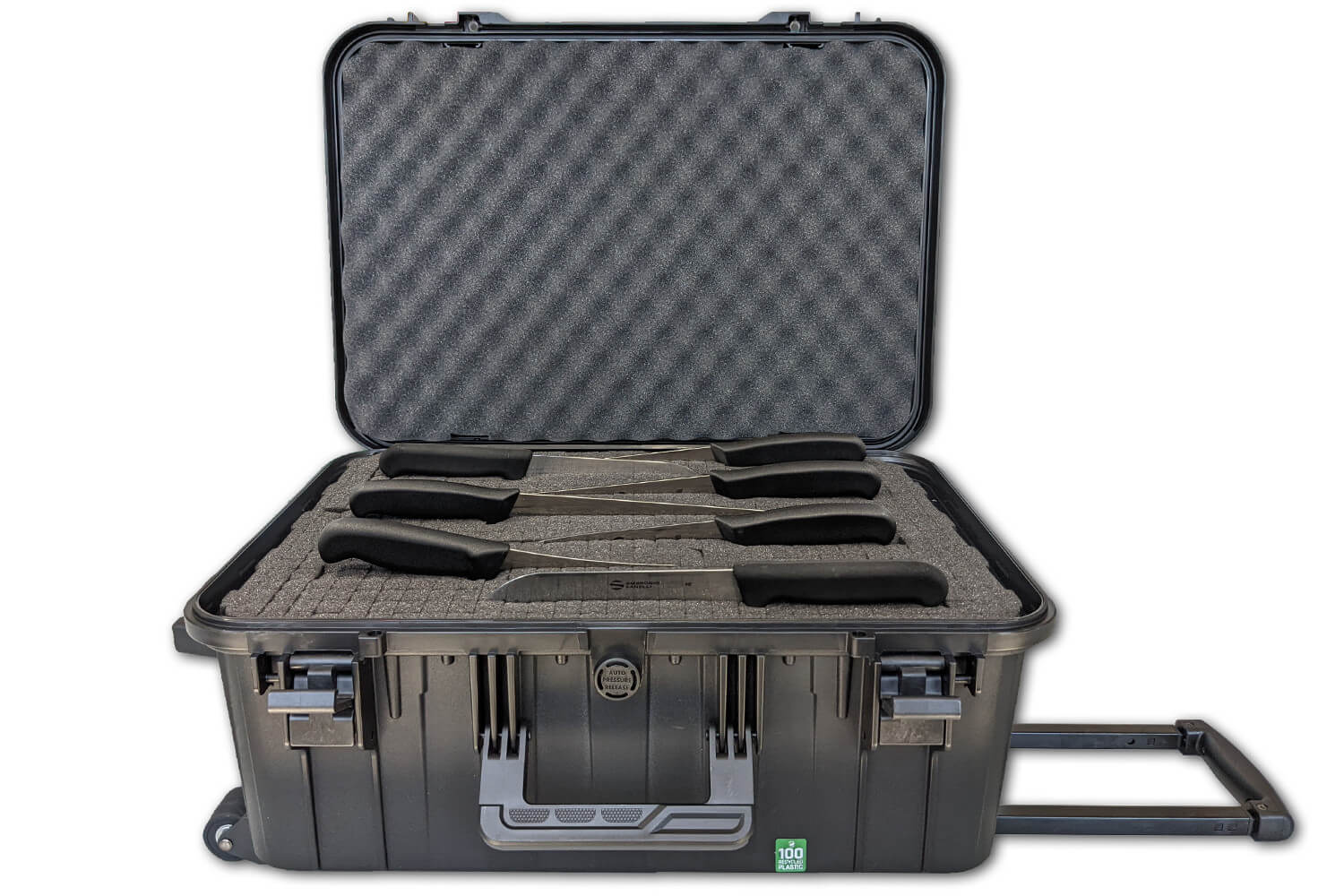Elle est également dotée d'une valve de pressurisation automatique ainsi que de deux clips à ressort, assurant ainsi une fermeture parfaitement hermétique. Vous n'avez donc aucun risque que la valise s'ouvre accidentellement. Si vous le souhaitez, vous pouvez ajouter un cadenas pour une sécurité renforcée, afin de prévenir le vol de votre matériel.
