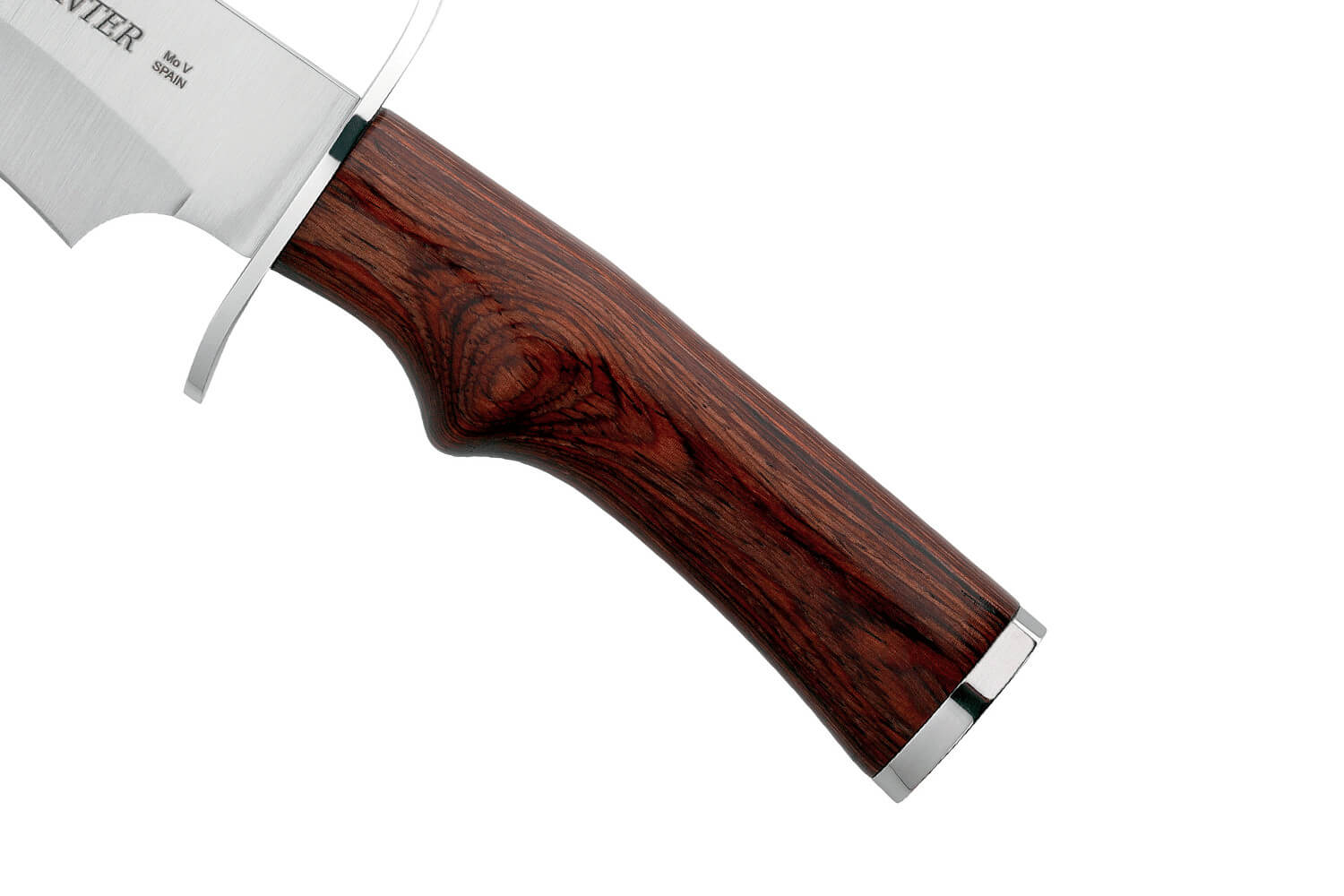 Le manche du Hunter est soigneusement fabriqué en stamina wood. Il s'agit d'une essence naturelle pourvue de veinage raffiné qui vire au rouge. Sa conception ergonomique vous offre une prise en main parfaite. Ainsi, vous aurez un contrôle optimal sur le couteau et un maniement rassurant. Votre Muela 9298 dispose également d'un pommeau et d'une garde en inox qui donnent un rendu plus esthétique.