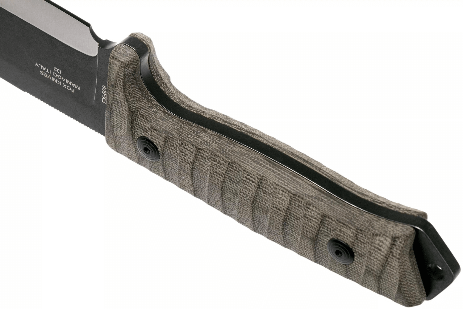 La lame de votre couteau Fox FX.609OD est conçue avec une émouture plate. Ce tranchant est doté de qualité de découpe prononcée. De plus, il est fabriqué à partir d'acier conventionnel de niveau supérieur : le D2. Cet alliage métallique inoxydable offre une excellente rétention du fil du tranchant.