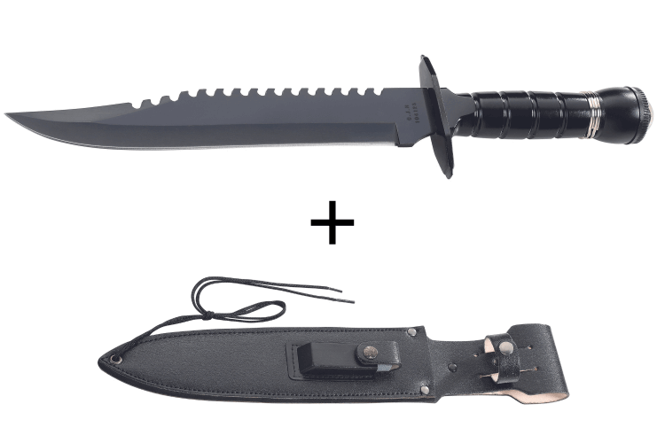 Pour son manche, il est réalisé en métal noir dont la conception est très ergonomique. Celui-ci assure une prise en main ferme et confortable. D'ailleurs, ce couteau est équipé d'une boussole amovible à l'extrémité du manche pour vous orienter durant vos randonnées pédestres.