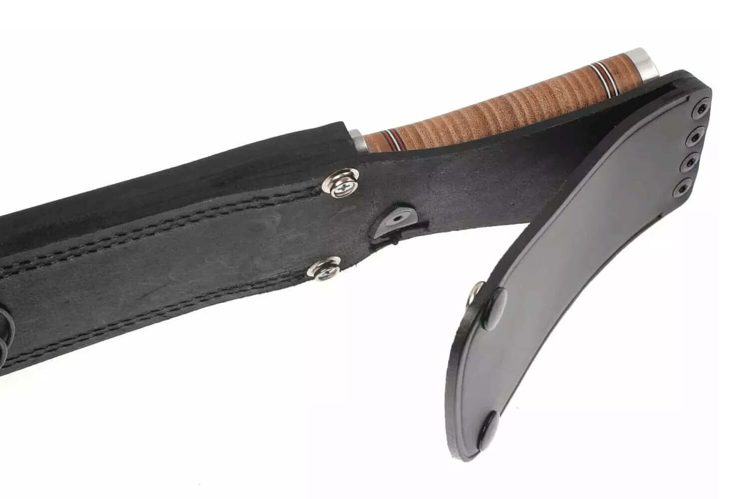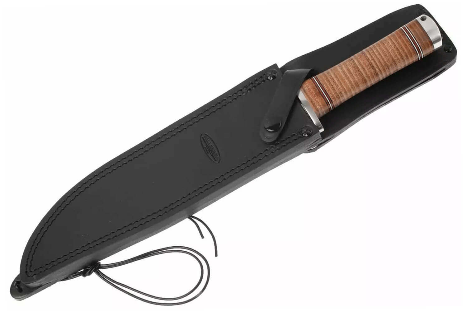 Le couteau est vendu avec son étui en cuir noir.