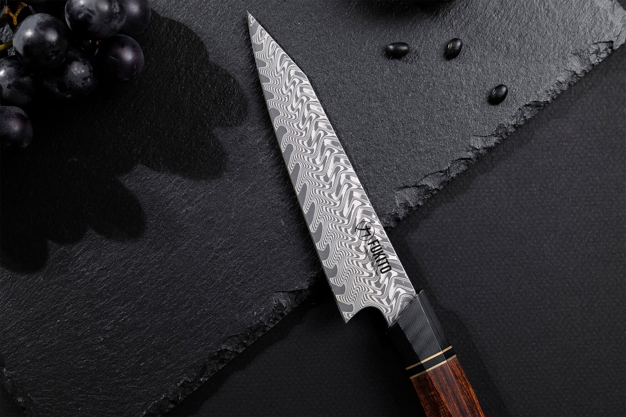 Les couteaux Fukito Desert Damas sont remarquables en tout point. La lame a un design singulier, sa finesse et son acier lui donnent un excellent tranchant. Le manche noble en G10 et bois de fer du désert est très original, extrêmement bien fini, agréable en main autant qu'à l'oeil. Une gamme remarquable qui fait des miracles.