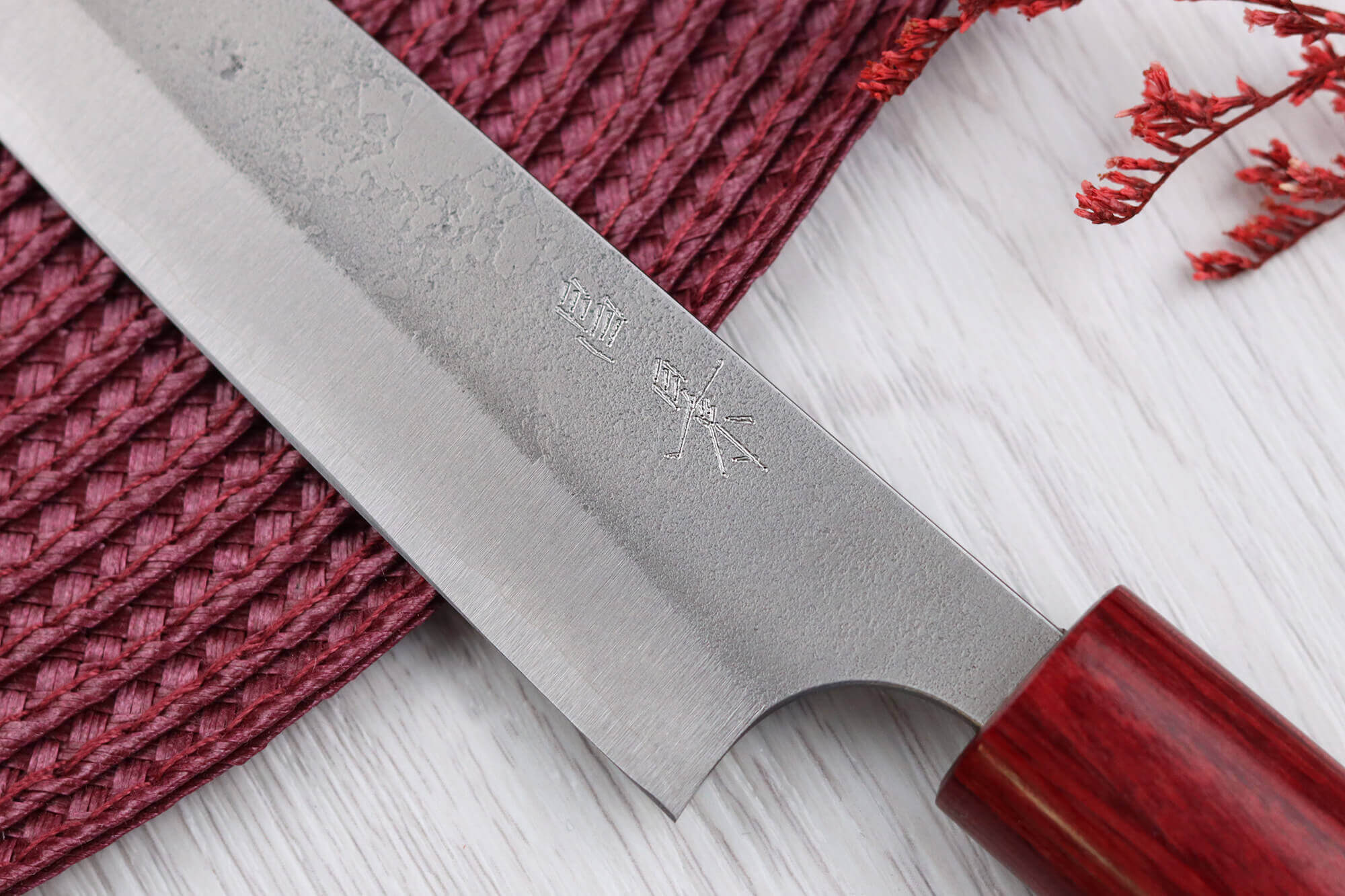 Le noyau de cette lame a été créé en acier japonais Shirogami 2 (aussi appelé White Steel 2), un alliage produit par le célèbre sidérurgiste Hitachi, connu à l'international. Cet acier est réputé pour être le plus proche de l'acier tamahagane, celui utilisé pour la fabrication des épées traditionnelles japonaises.