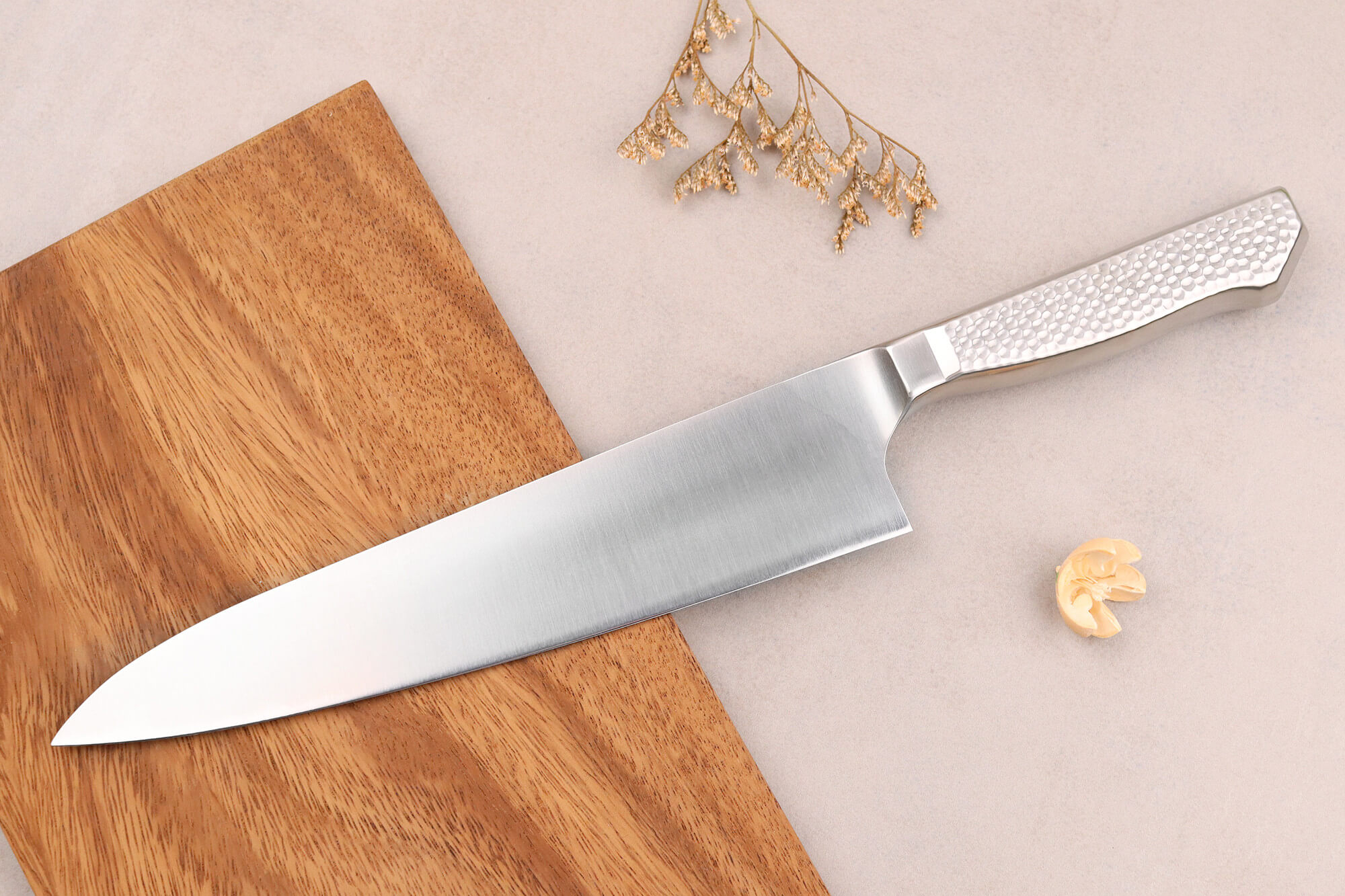 Le couteau de chef, également connu sous le nom de gyuto, se distingue par sa polyvalence, offrant une solution idéale pour un large éventail de découpes en cuisine. Que ce soit pour hacher de la viande, émincer des légumes ou ciseler des herbes aromatiques, le couteau gyuto de la gamme Glestain Home Series répond à divers besoins culinaires.