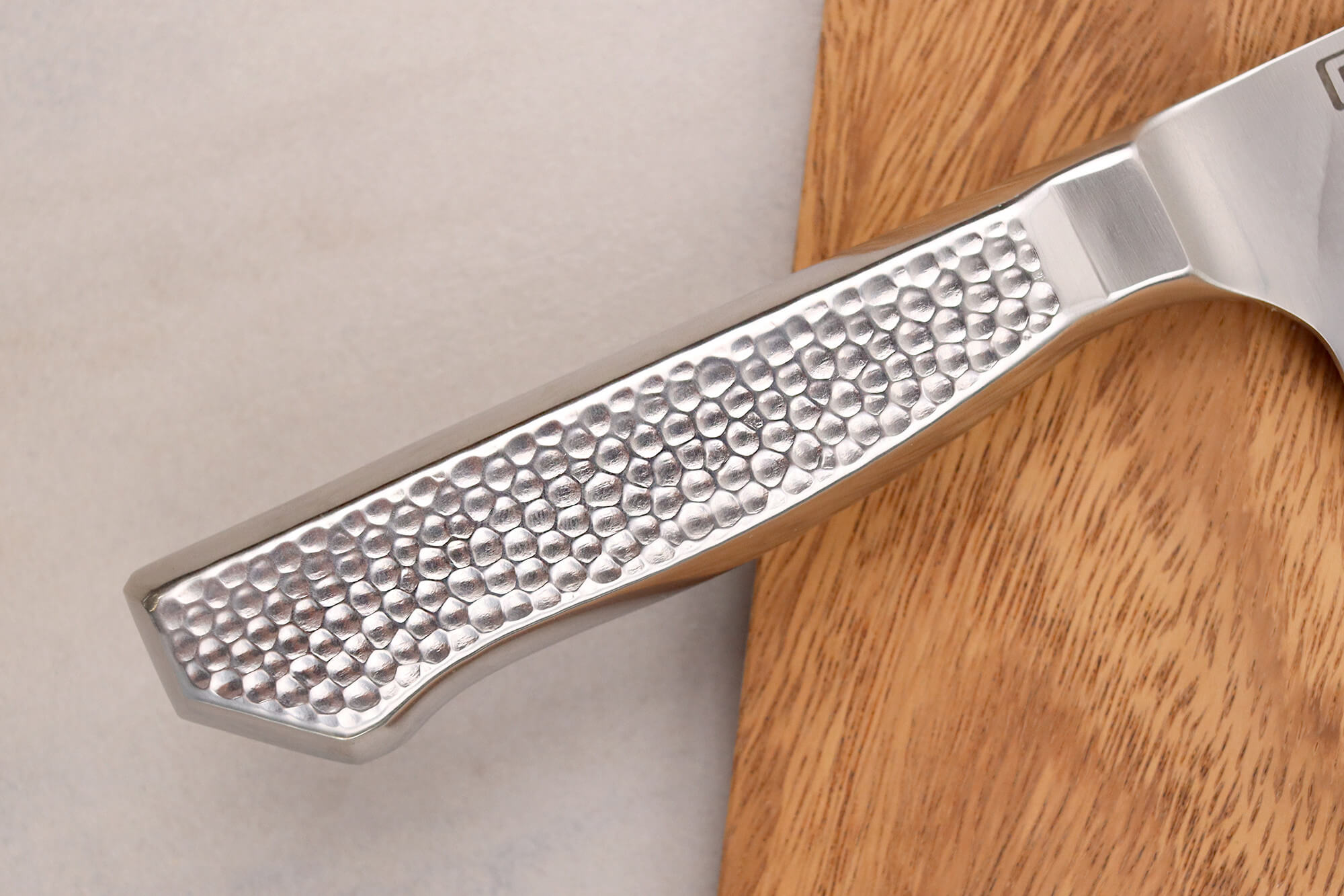 Le manche de votre couteau japonais est fabriqué en acier inoxydable, assurant ainsi une robustesse et une durabilité optimales. Son design original ajoute du caractère à votre couteau de cuisine ! Il est également doté d'une mitre en inox qui, en plus de renforcer l'équilibre, vous permet d'avoir une préhension idéale.
