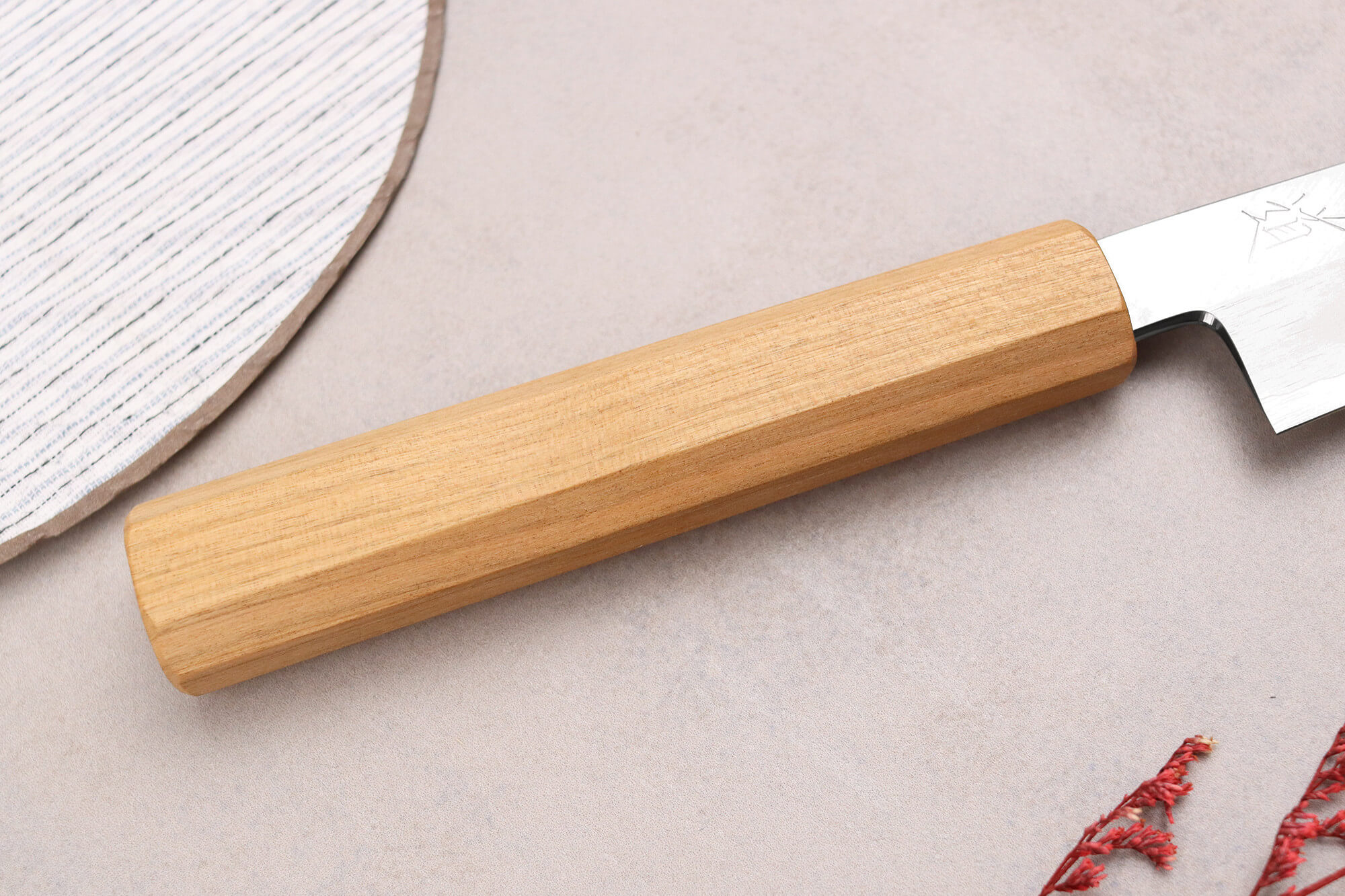 Votre couteau japonais artisanal est doté d'un manche octogonal qui convient aux cuisiniers droitiers et gauchers. Il épouse parfaitement la paume de votre main, ce qui vous offre confort et maniabilité, même en cas de découpes prolongées.