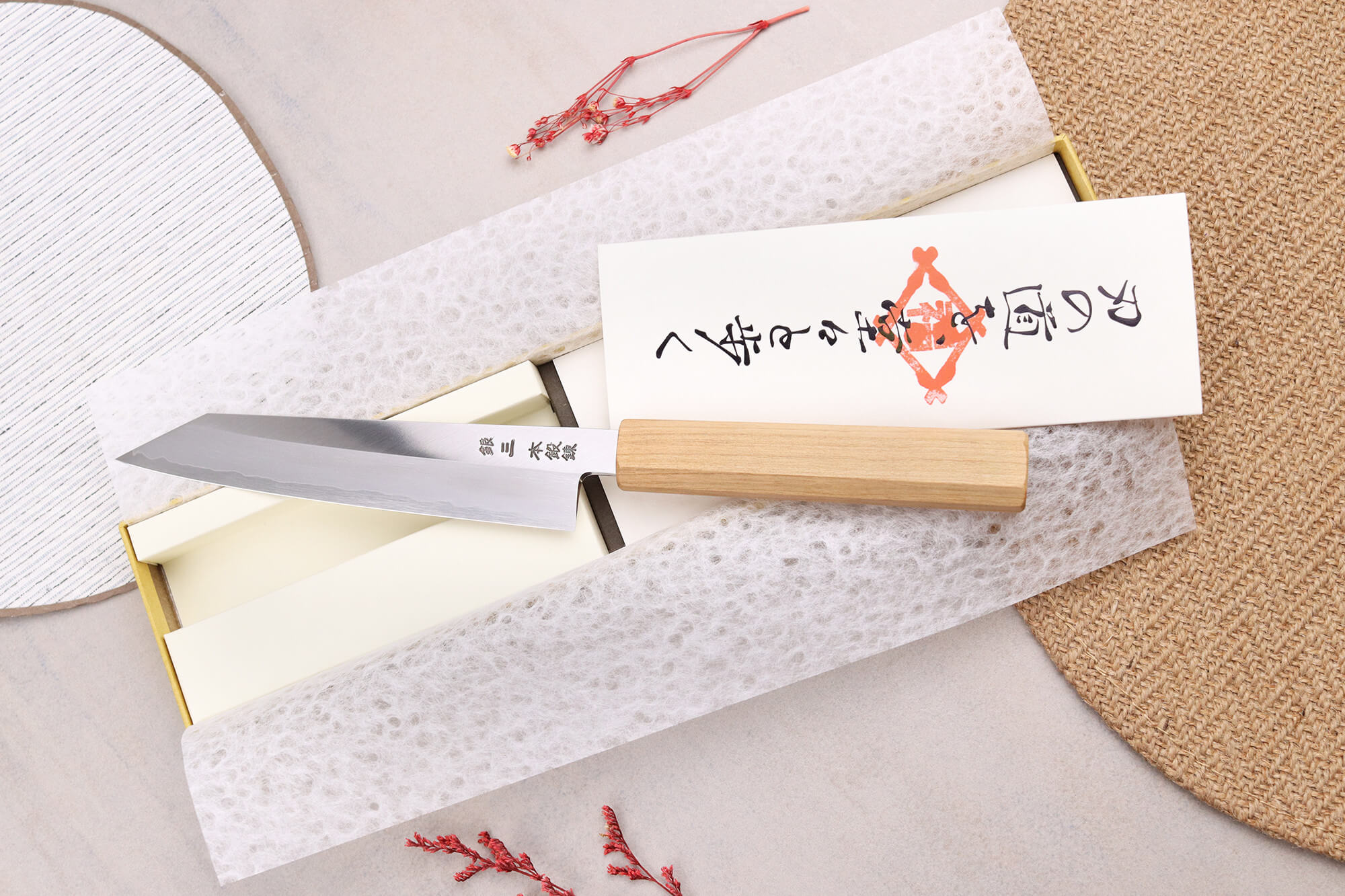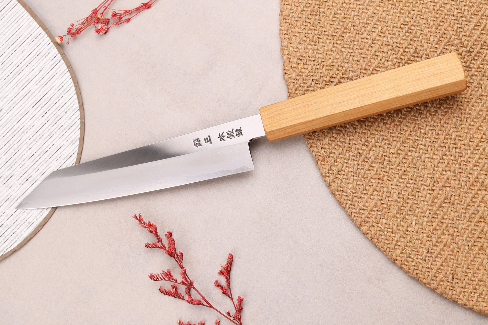 Couteau santoku kiritsuke 18cm japonais artisanal Hado Ginsan Cherry
