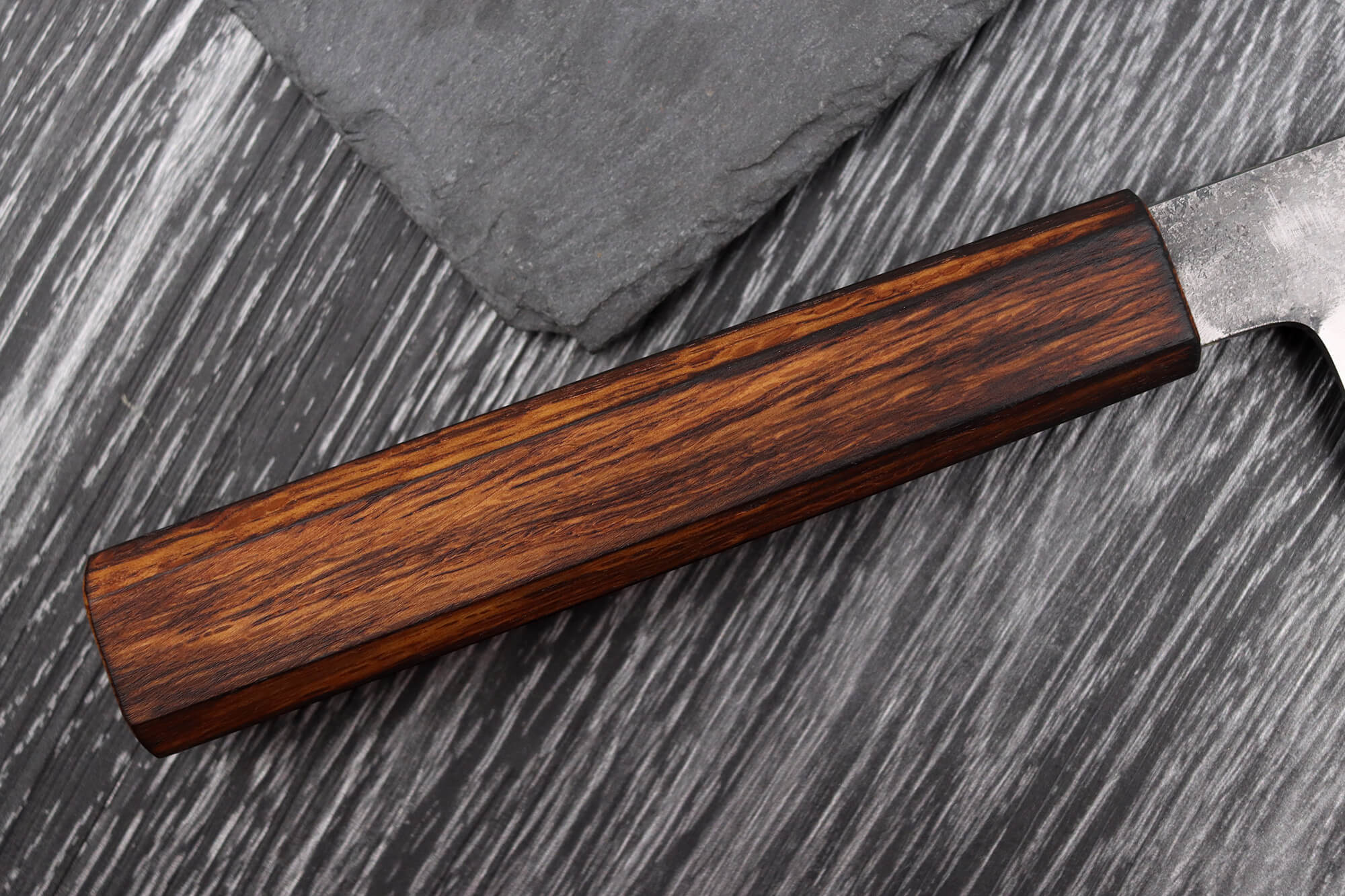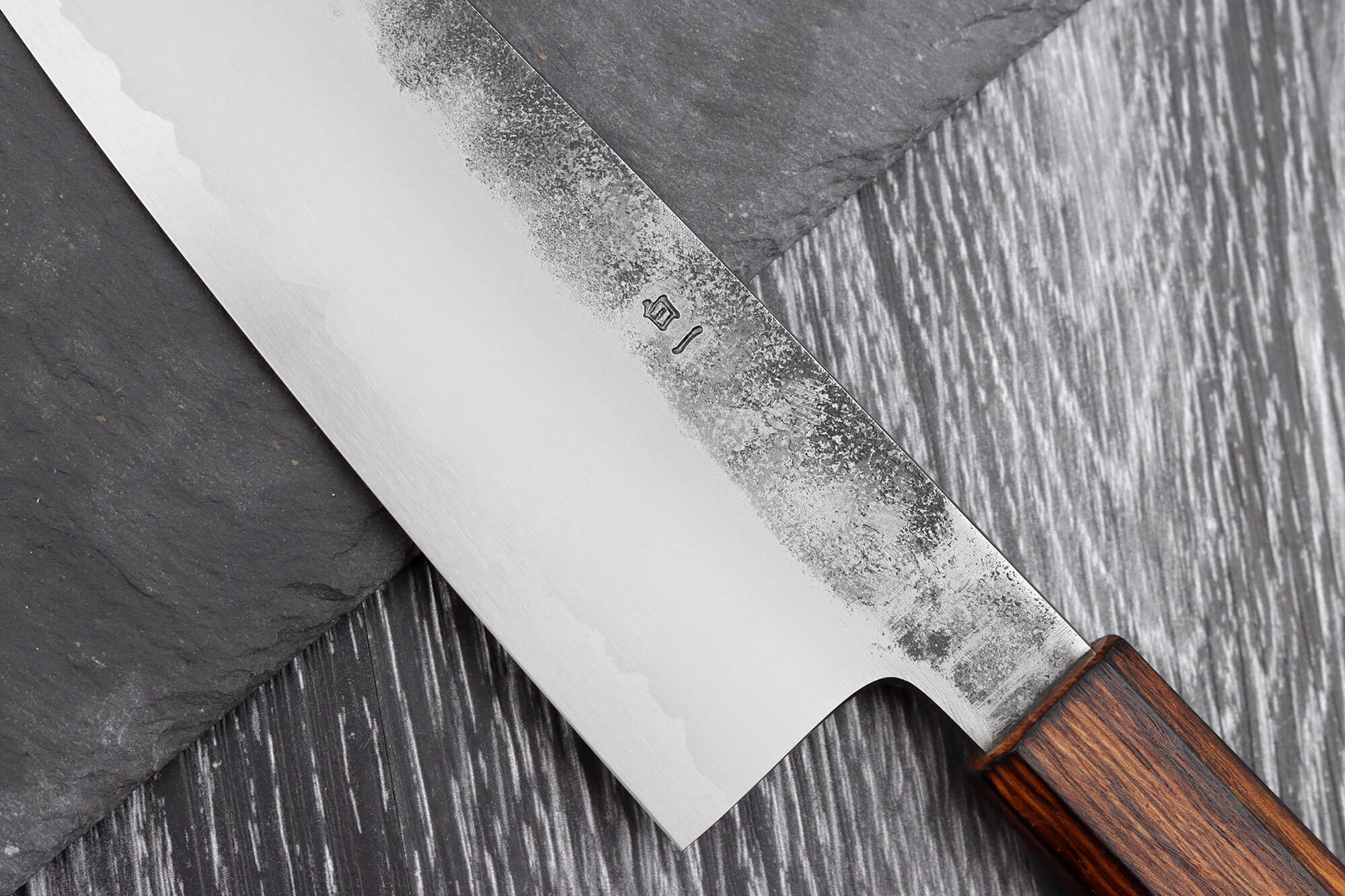 Au fil du temps, la lame peut légèrement changer de teinte, ce qui est tout à fait normal. Cette patine naturelle résulte de la réaction de l’acier carbone à l’acidité des aliments et à l’humidité ambiante. Elle n’affecte en rien les performances ou la durabilité de votre couteau japonais, mais témoigne de son caractère unique et artisanal !