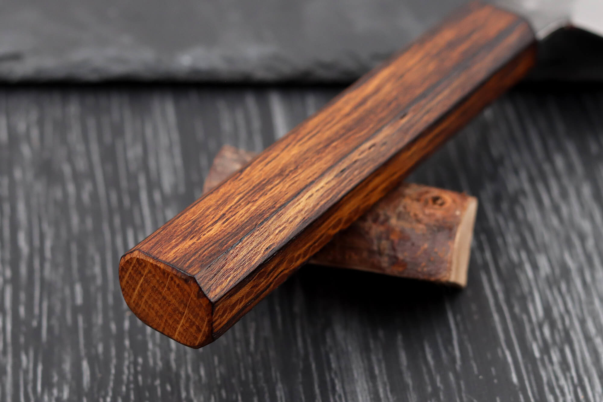 Manche conçu en bois de chêne brûlé et laqué - Solide