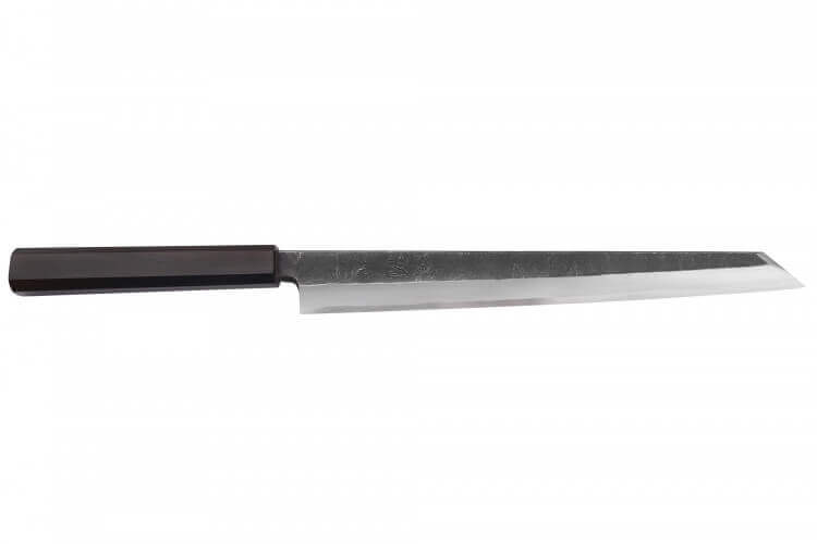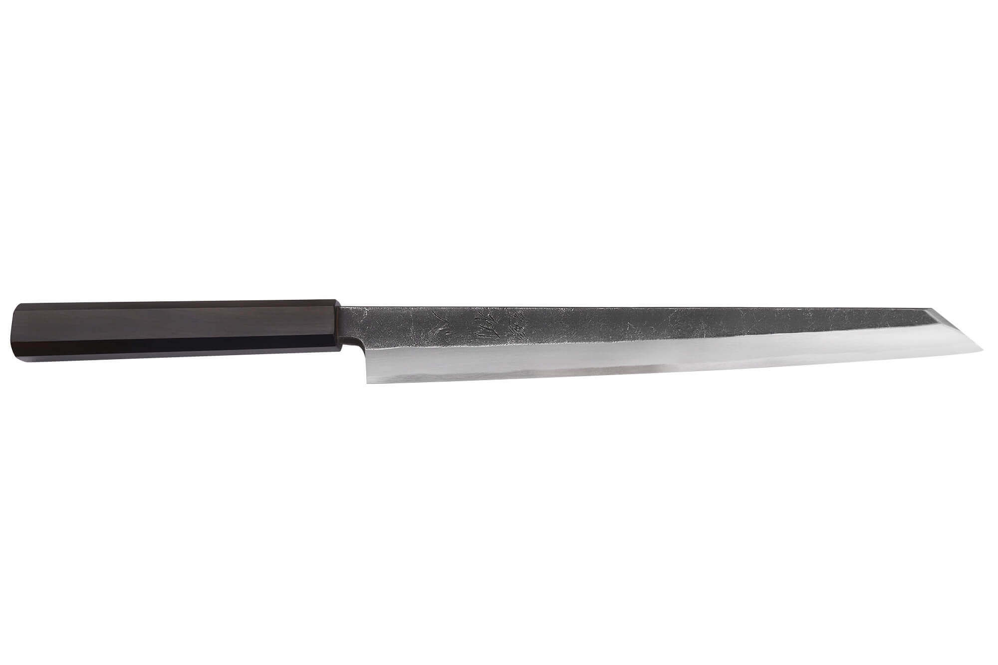 Couteau sakimaru 27cm japonais artisanal Hatsukokoro Shirasagi manche en ébène