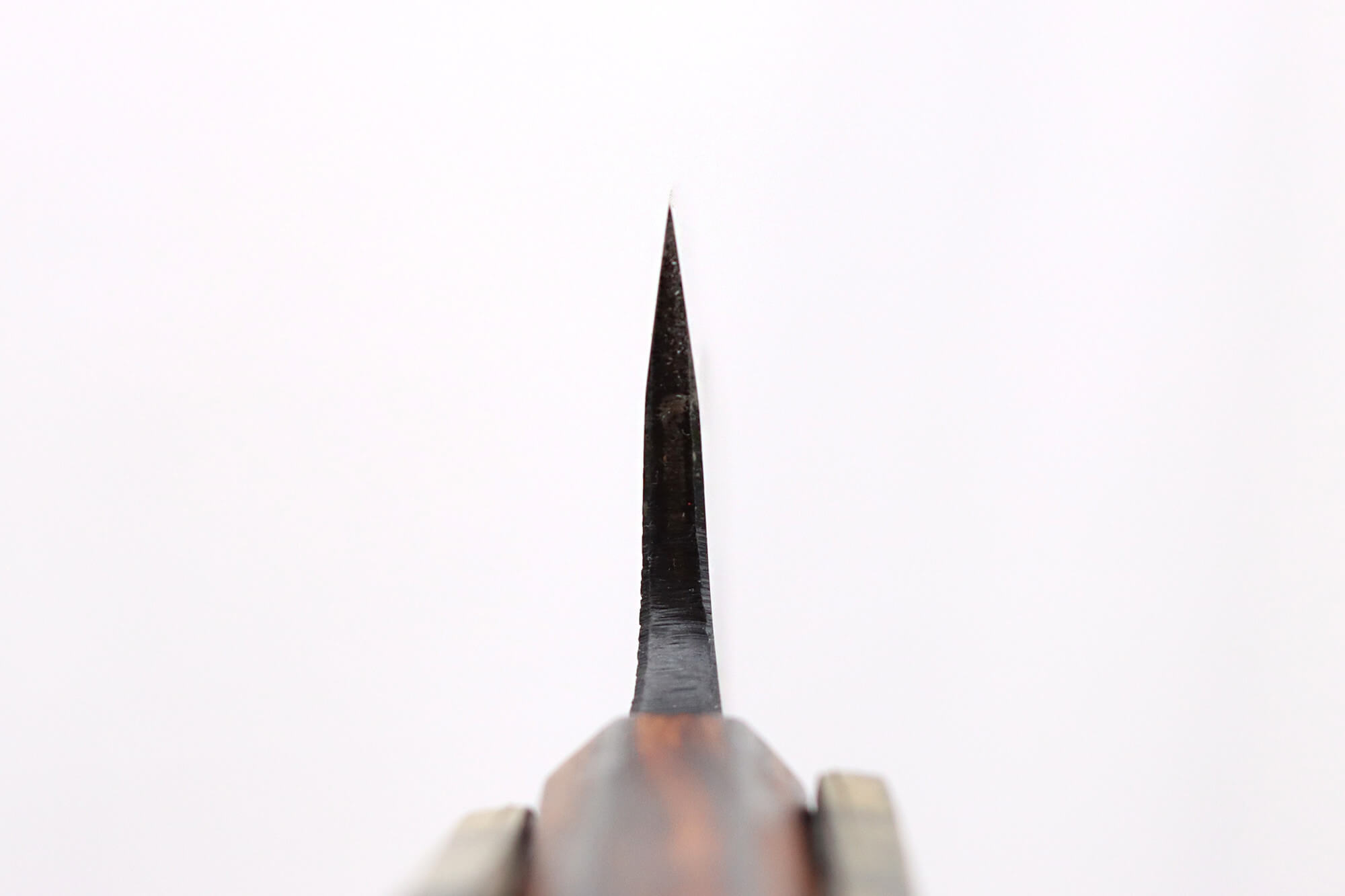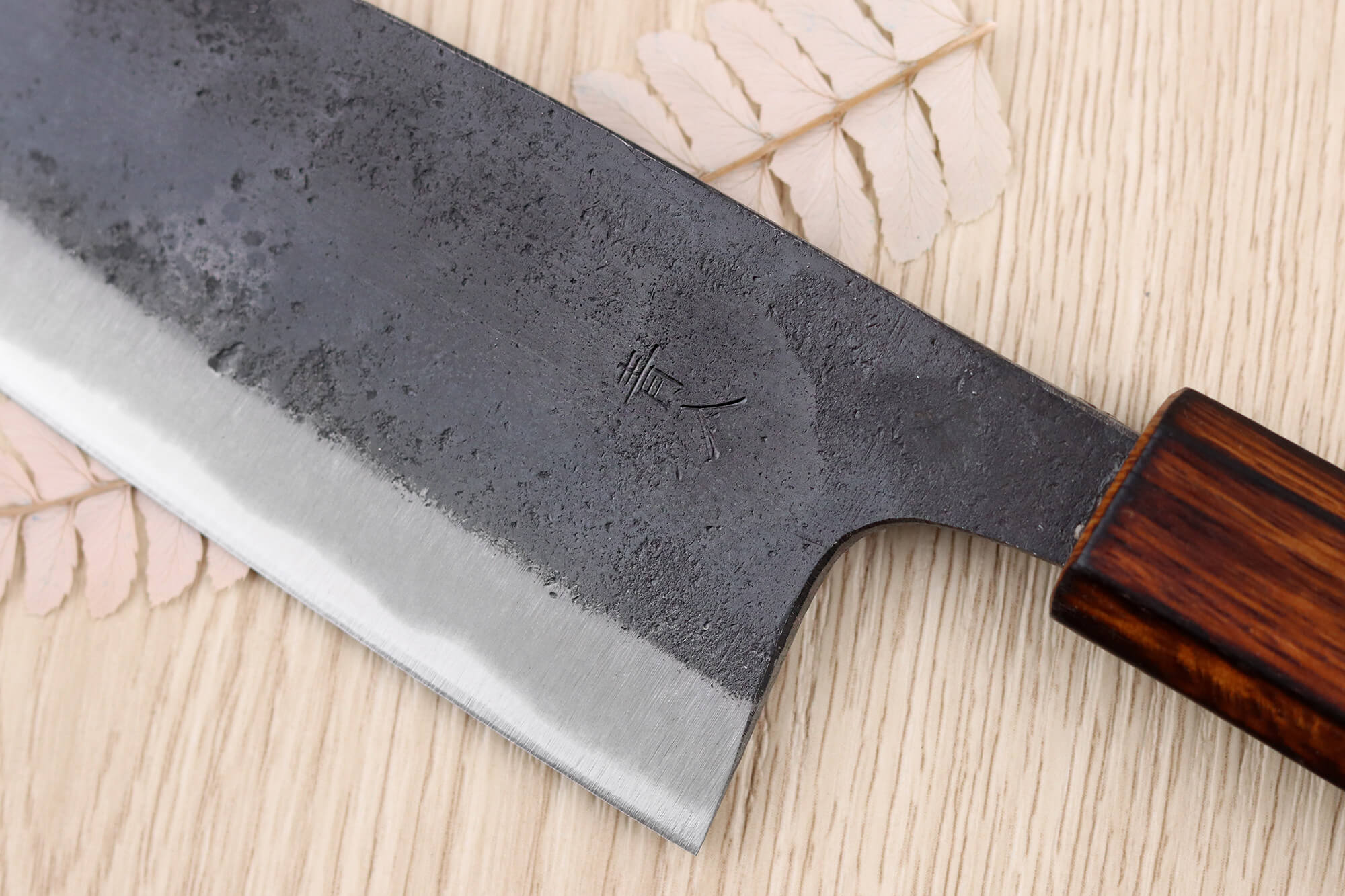 Avec le temps, une patine peut se former sur la lame : elle témoigne d’un usage régulier et n’affecte pas ses performances. Pour maintenir un tranchant optimal, réalisez un affûtage régulier à la pierre japonaise.