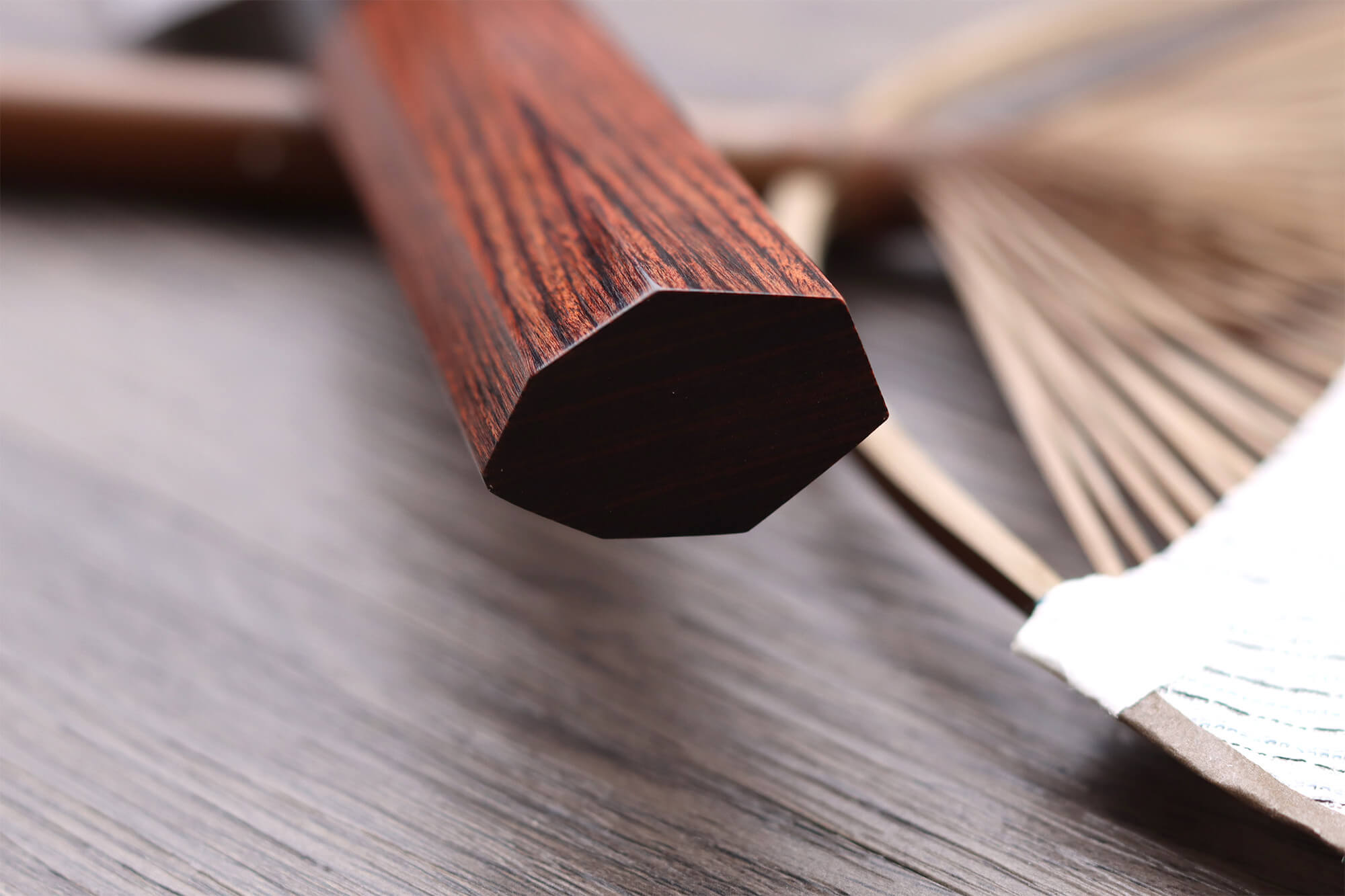 Manche profilé heptagonal en bois de pakka marron et mitre noire