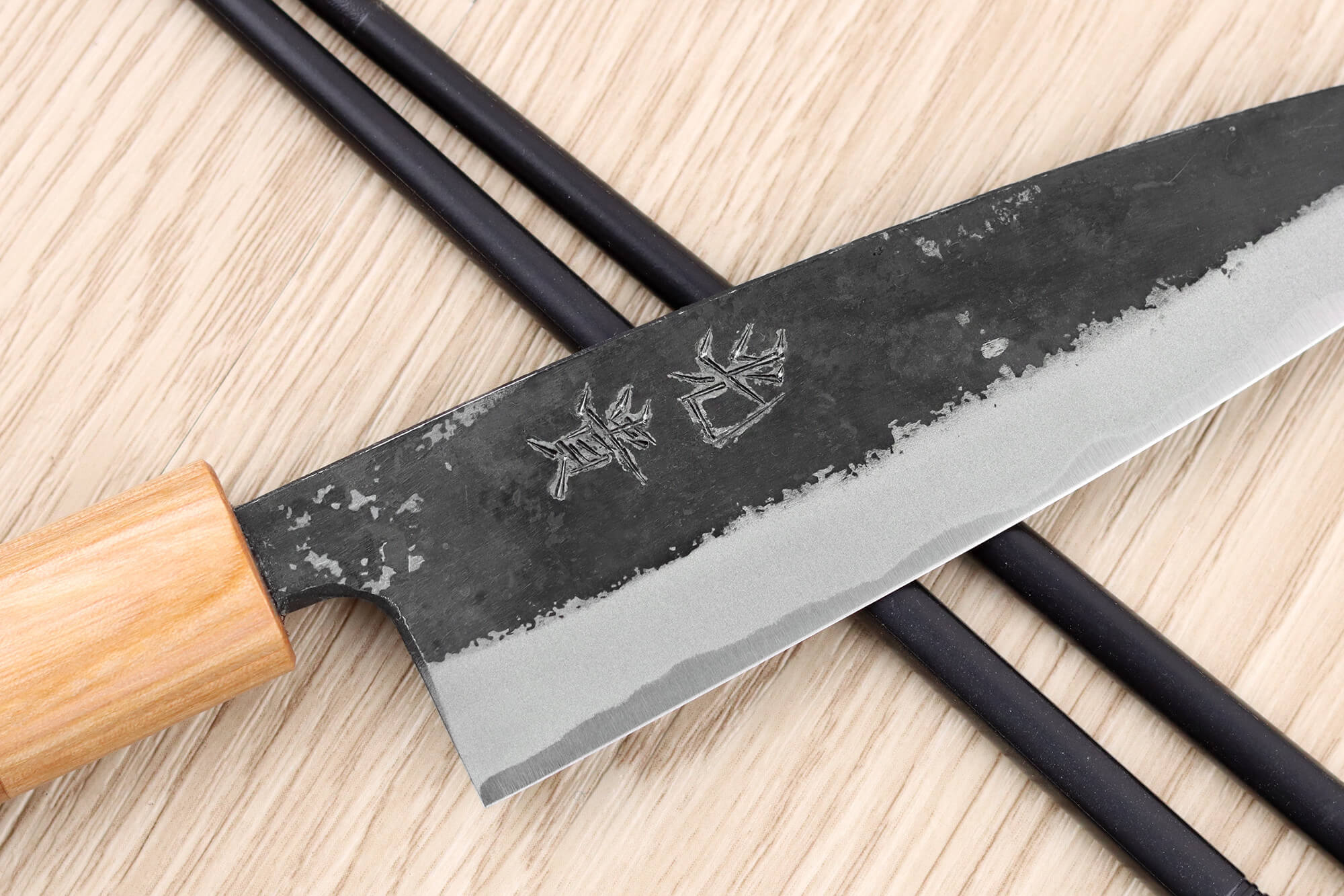 Finition de lame brute de forge et kanjis gravés à la main - Authentique