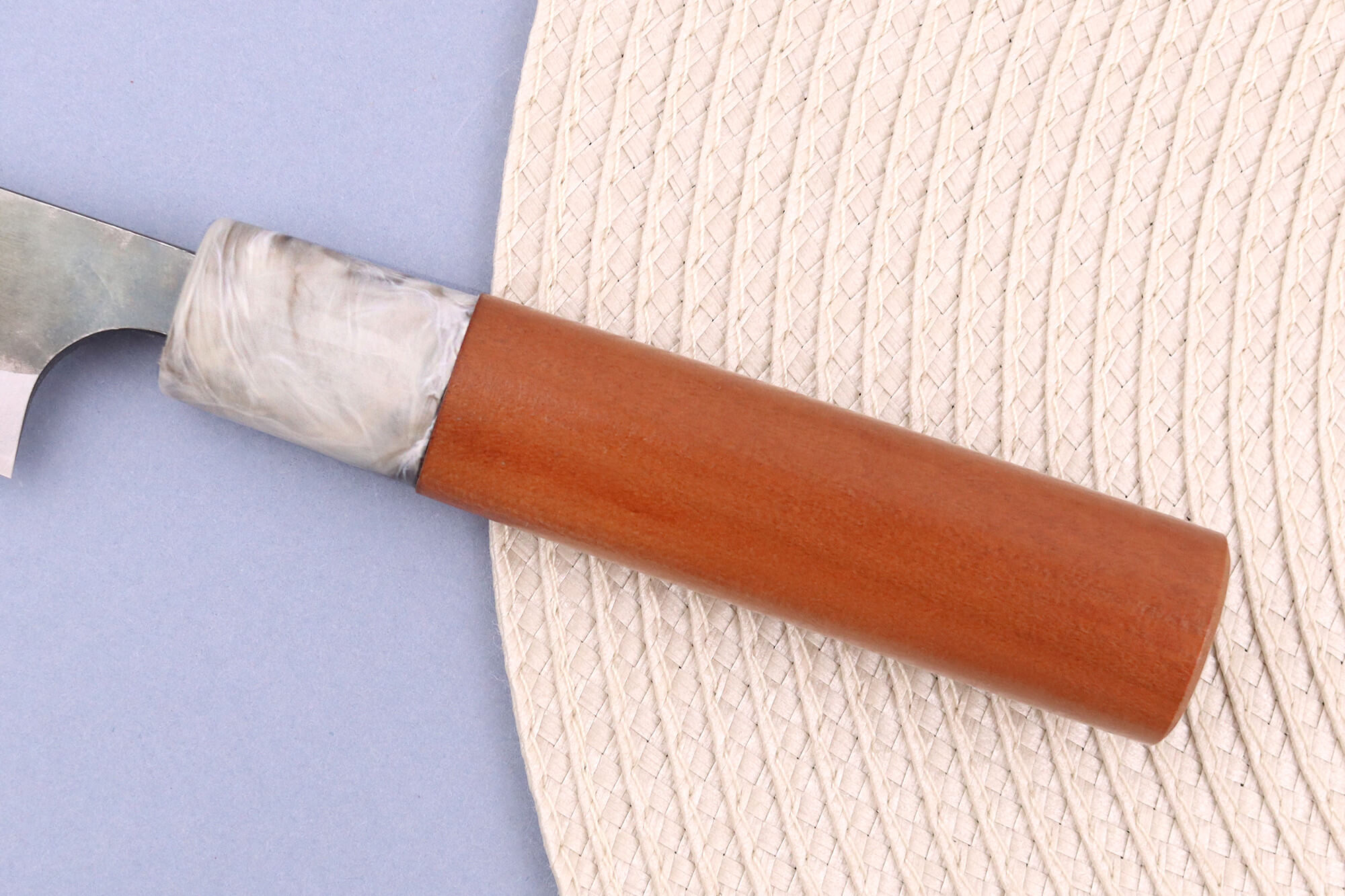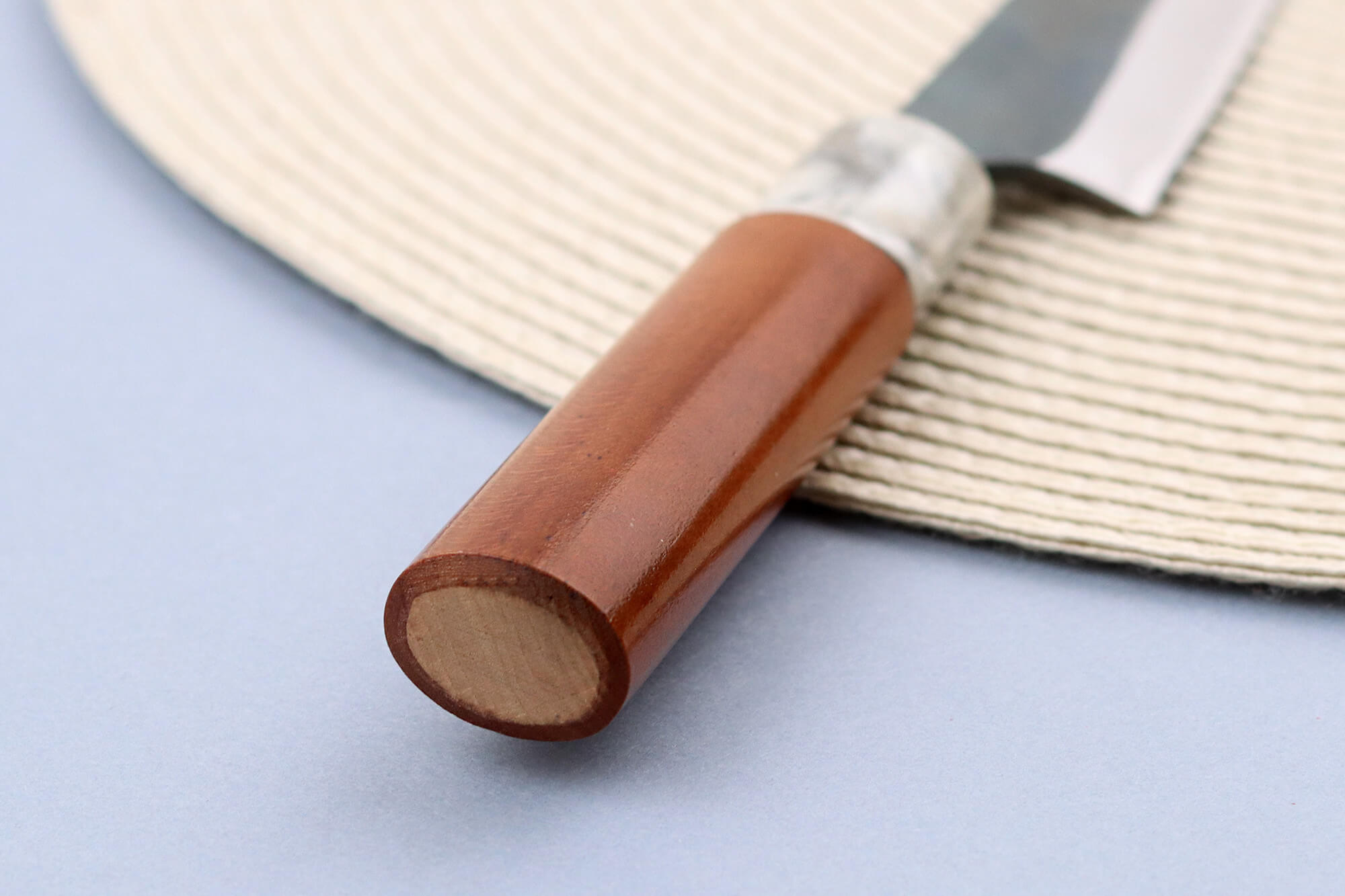Le manche en bois de cerisier japonais offre une belle douceur au toucher, tout en étant léger et robuste. Sa forme ovale le rend confortable à tenir, que vous soyez droitier ou gaucher.