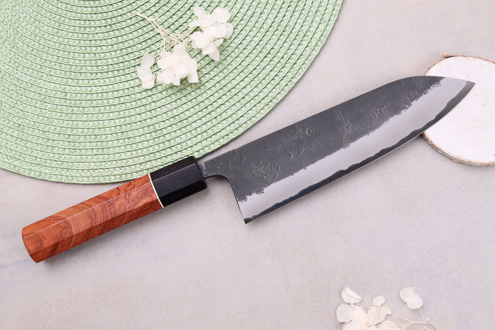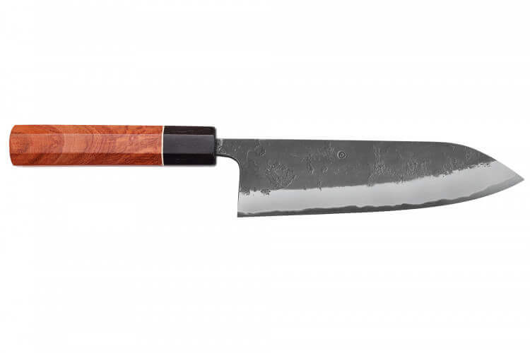 Couteau santoku 18cm japonais artisanal Masashi Yamamoto BS1 Black Nashiji