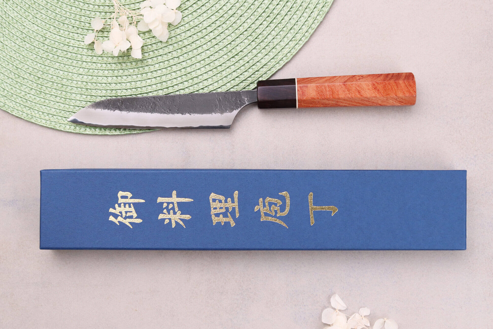 Ce couteau japonais a été forgé par Masashi Yamamoto san, forgeron créant des couteaux d'exception. C'est un jeune forgeron moderne qui s'est formé au métier en famille, avec son plus grand frère. En 2013, il s'est senti prêt à créer son propre atelier et s'est donc lancé.