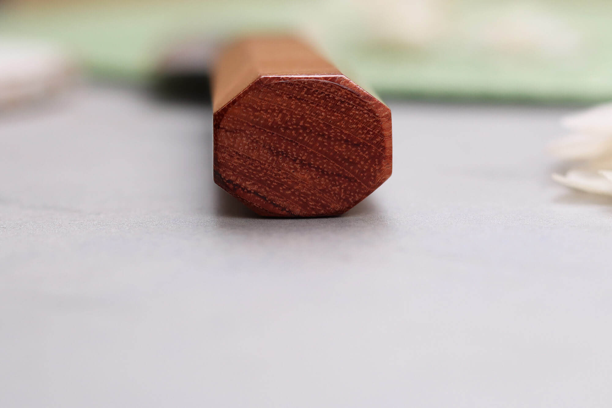 C'est du bois de cognassier qui a été utilisé pour concevoir le manche du couteau. Ce bois à la teinte claire présente une très bonne résistance face aux écarts de température et à l'humidité, il est apprécié pour sa durabilité.