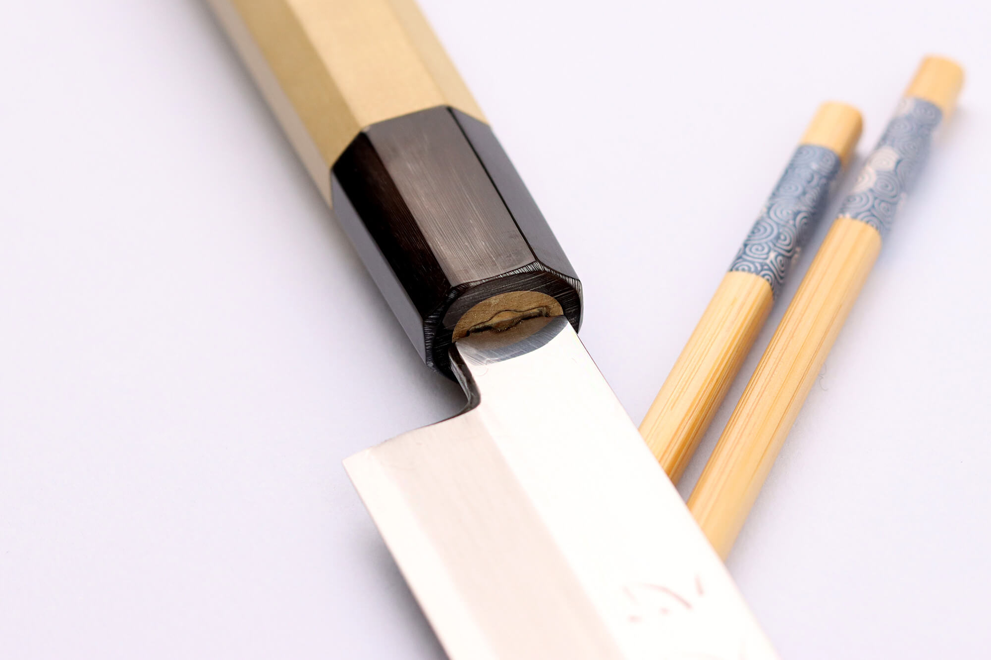 L’acier Ginsan contient également 13,5 % de chrome, offrant une belle résistance face à la corrosion. Toutefois, malgré cette protection contre l’oxydation, un entretien soigneux reste recommandé pour préserver la qualité de votre couteau artisanal japonais dans le temps.