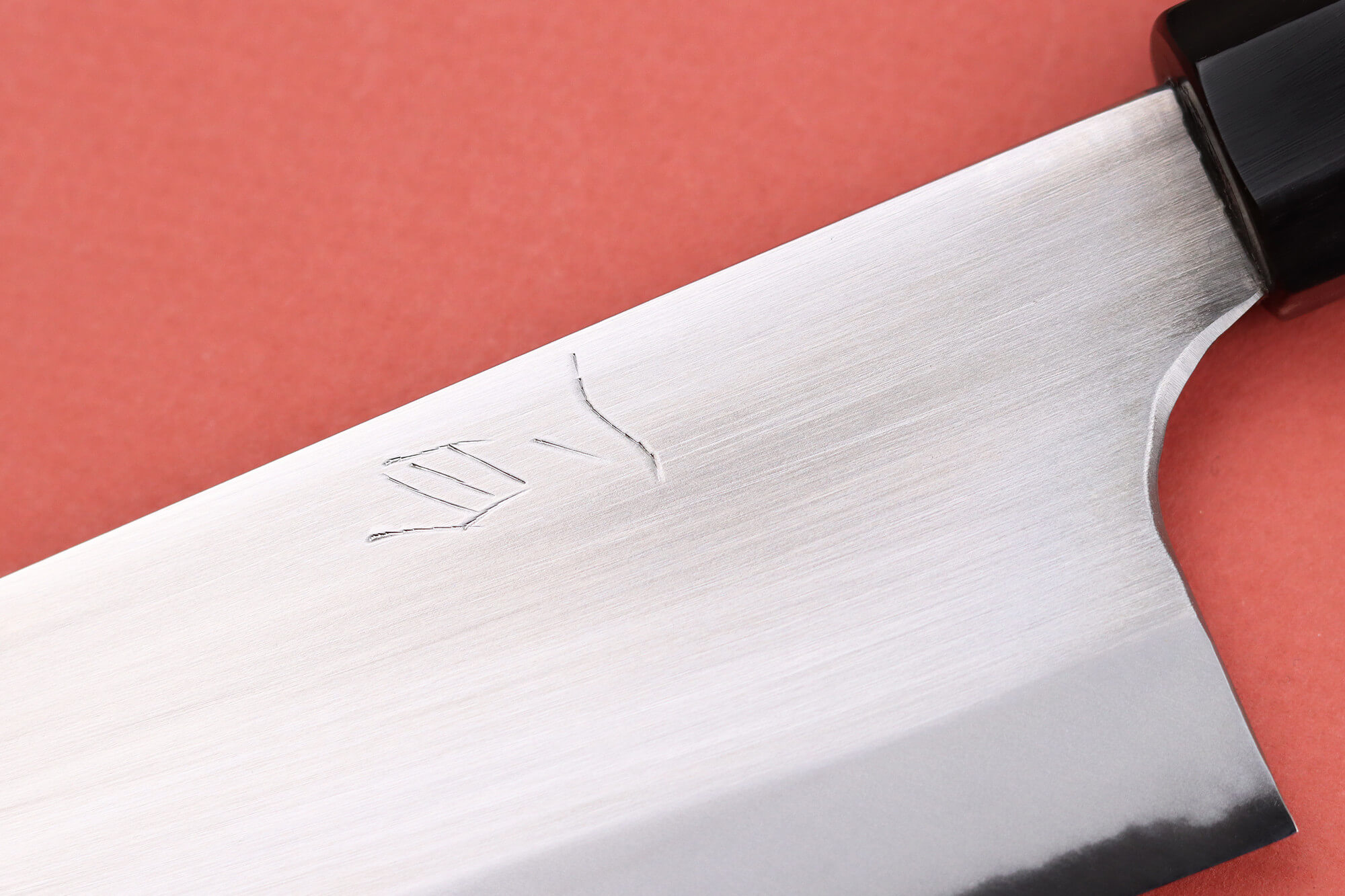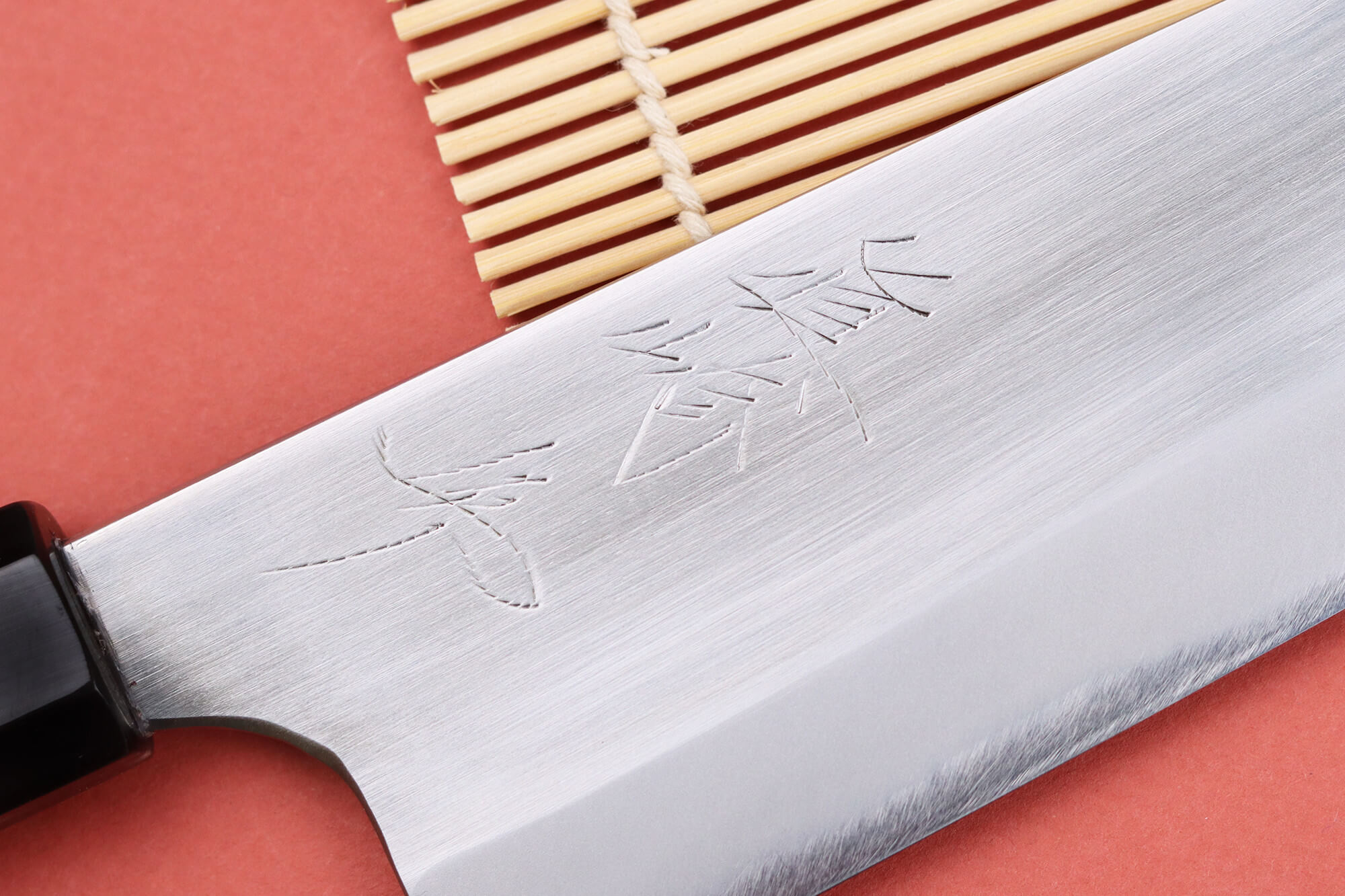 D'élégants kanji sont gravés de part et d'autre de lame et lui apportent un caractère très authentique. La lame a également été polie à la main et dispose d'une finition miroir très élégante.