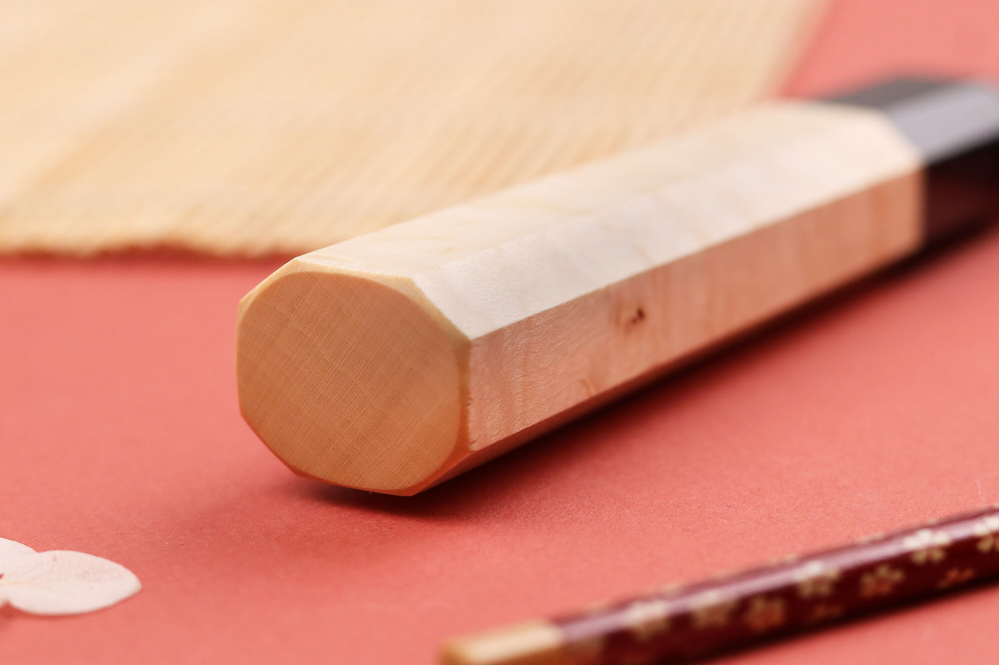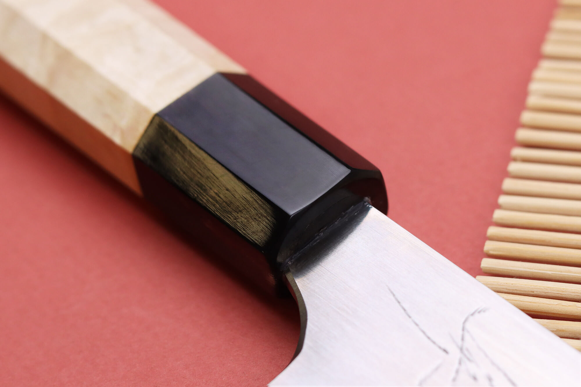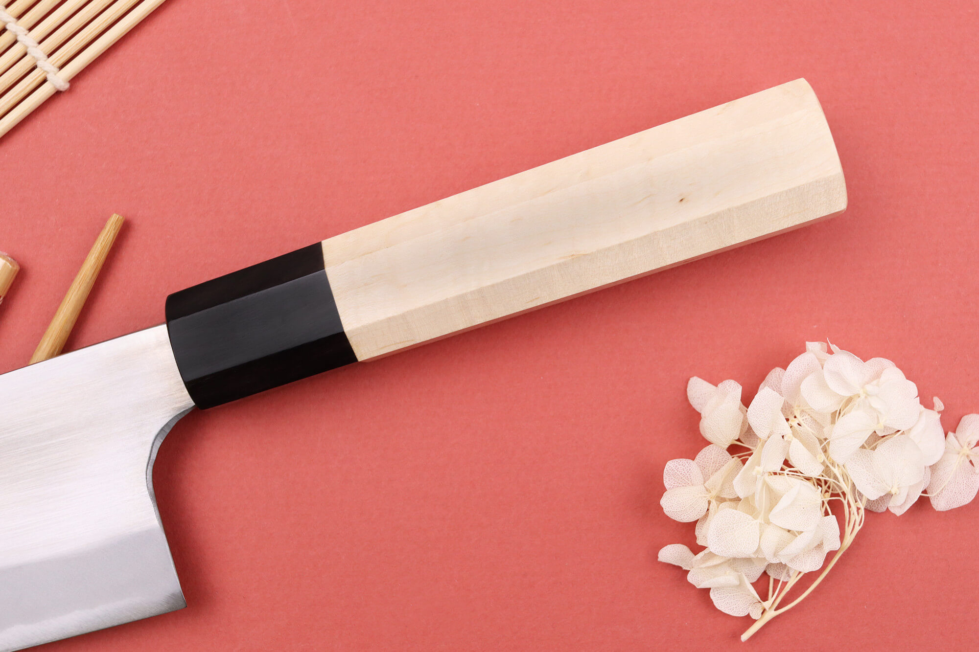 Ce couteau japonais artisanal est équipé d'un manche octogonal, ce qui le rend très agréable à tenir et adapté à tous les cuisiniers, qu'ils soient gauchers ou droitiers. Cette forme garantit une maniabilité idéale et convient parfaitement aux sessions de découpe intensives.