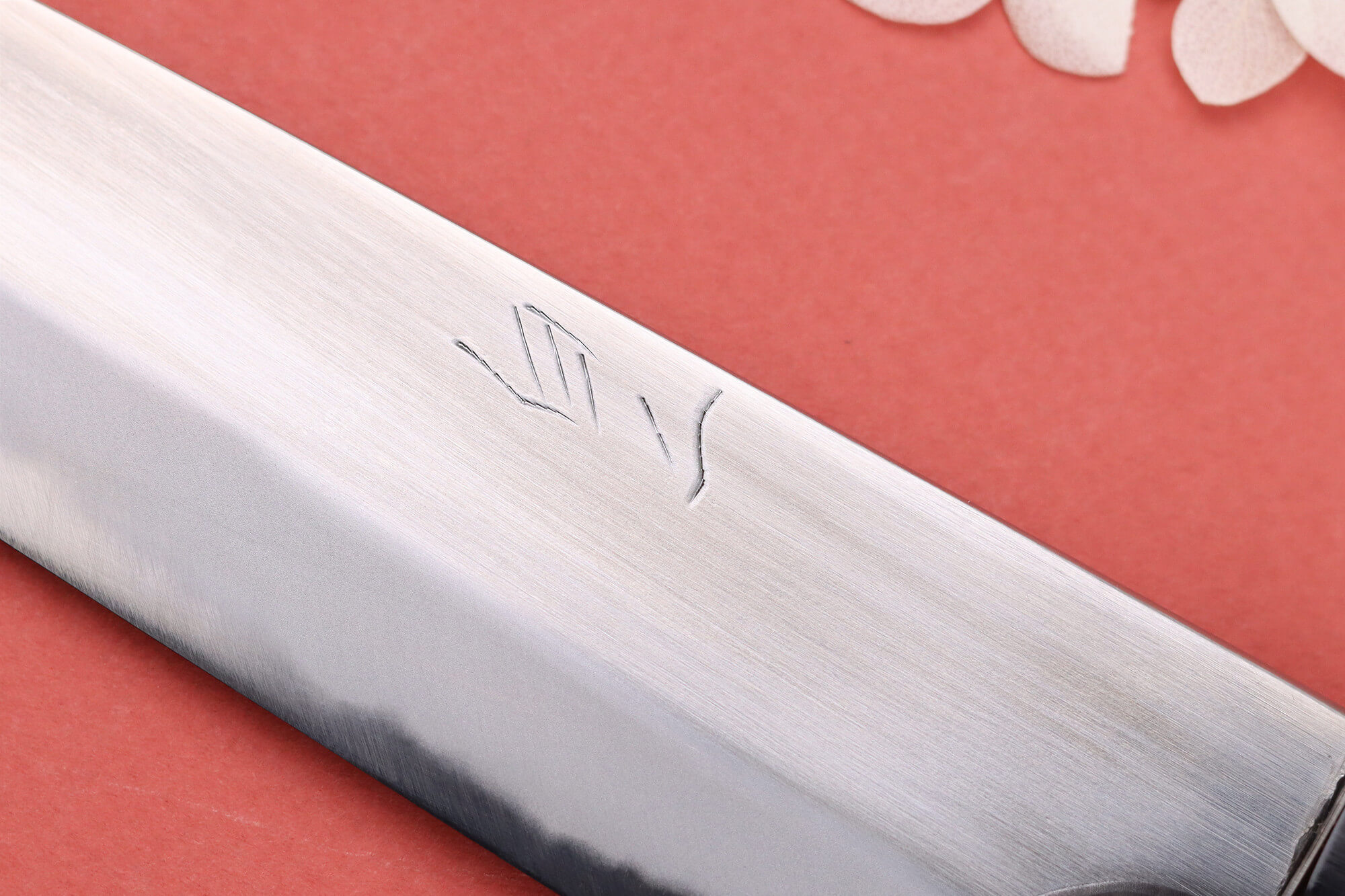 Il a alors suivi une formation de cinq années auprès de la marque Yoshikane, puis il a créé son propre atelier en choisissant de mettre en avant les techniques de forge traditionnelles. Aujourd'hui, il forge ses couteaux en utilisant principalement les aciers Aogami et Shirogami 2. Il façonne ces aciers de manière traditionnelle, leur donnant ainsi une finition authentique. Cette approche est très importante pour lui, car elle confère à ses créations un aspect très authentique qui lui tient particulièrement à cœur.