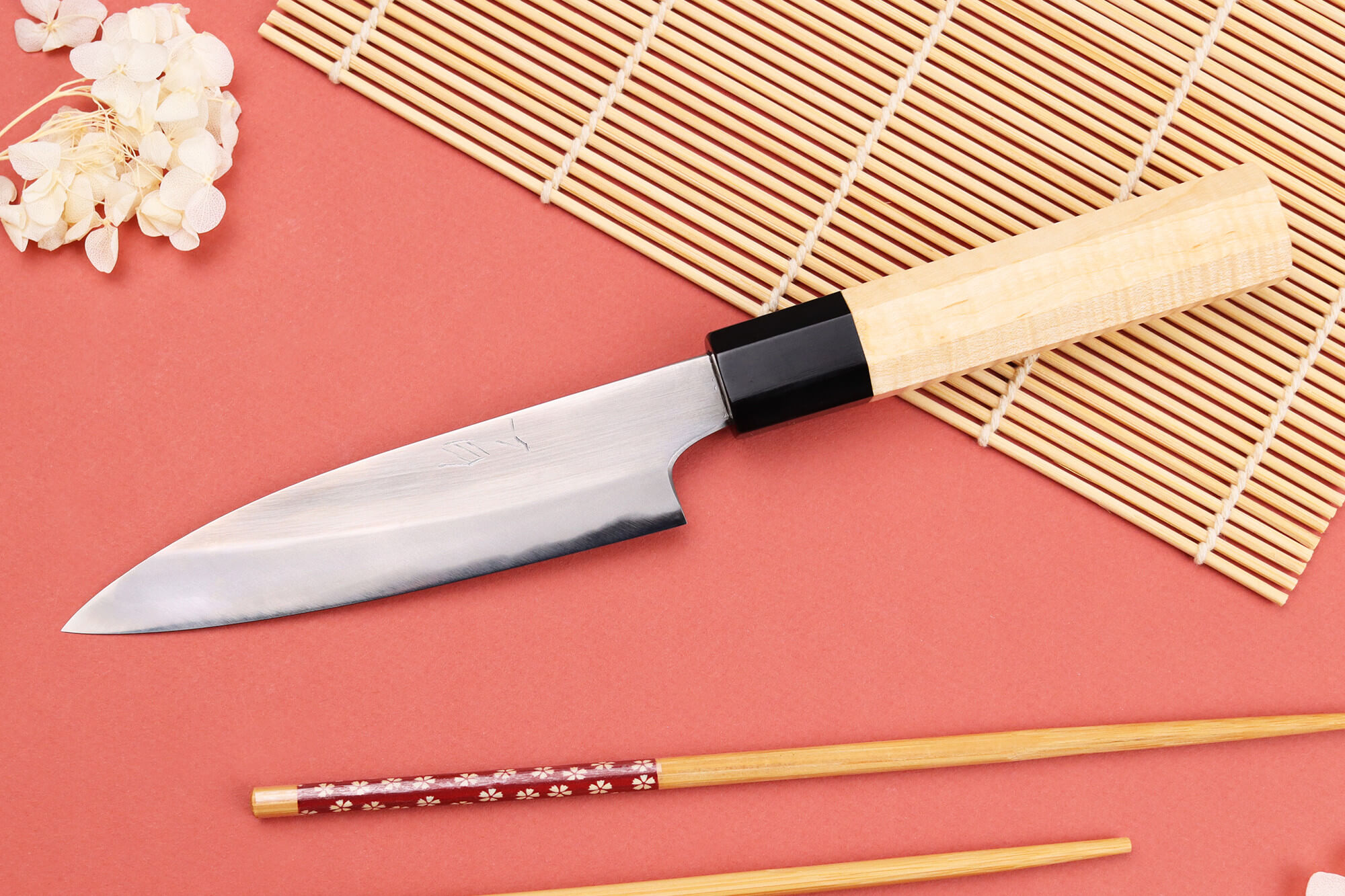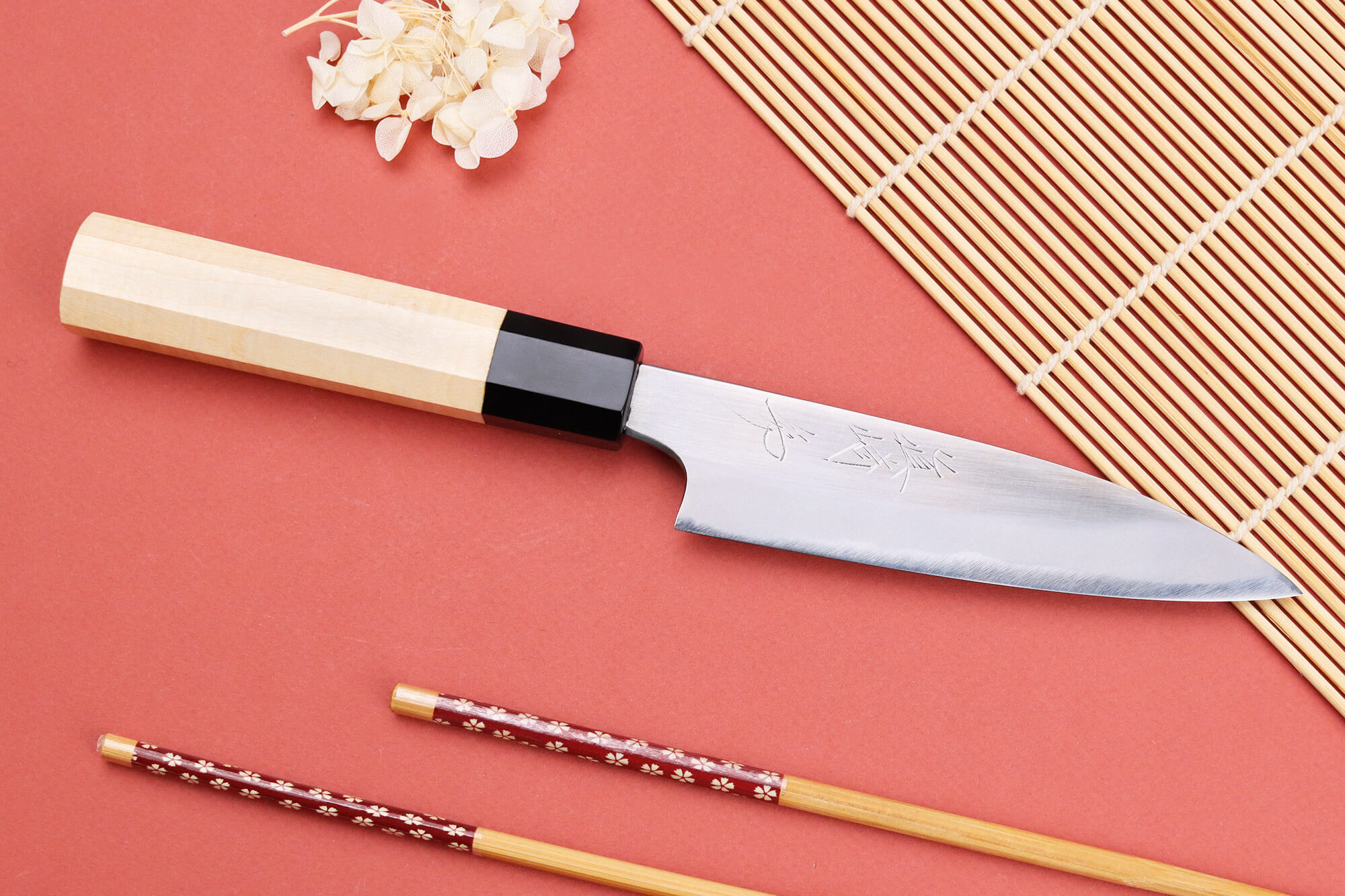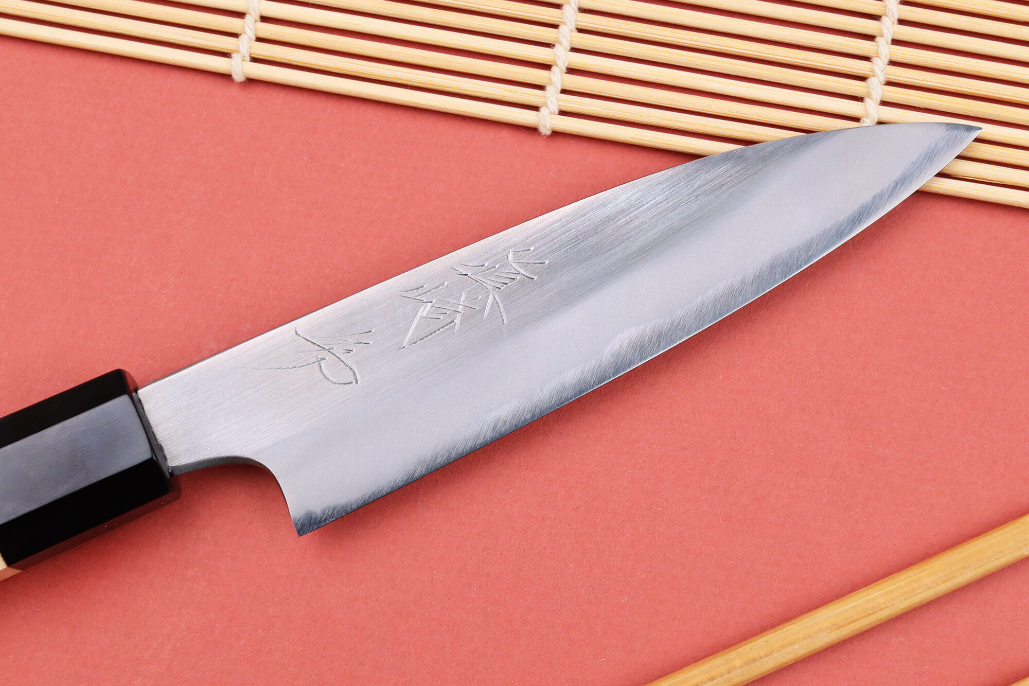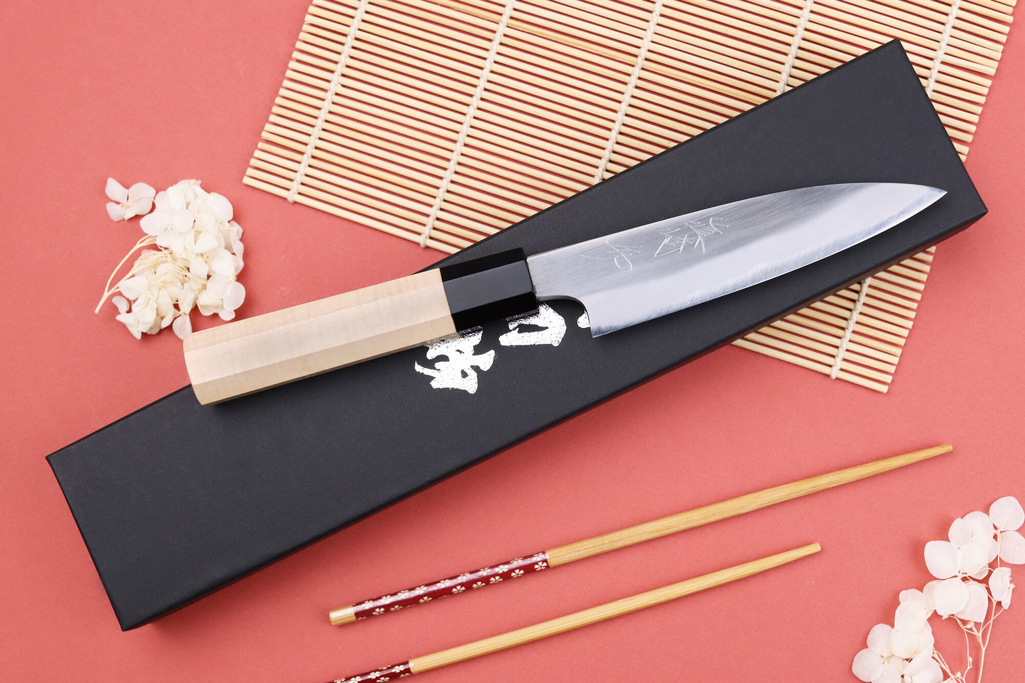 Naoki Mazaki étant également maître aiguiseur, il a lui-même affûté le couteau en utilisant plusieurs pierres à aiguiser pour obtenir un tranchant impeccable. D'ailleurs, chaque fois que le besoin se fait sentir, il est recommandé d'aiguiser votre couteau à la pierre.