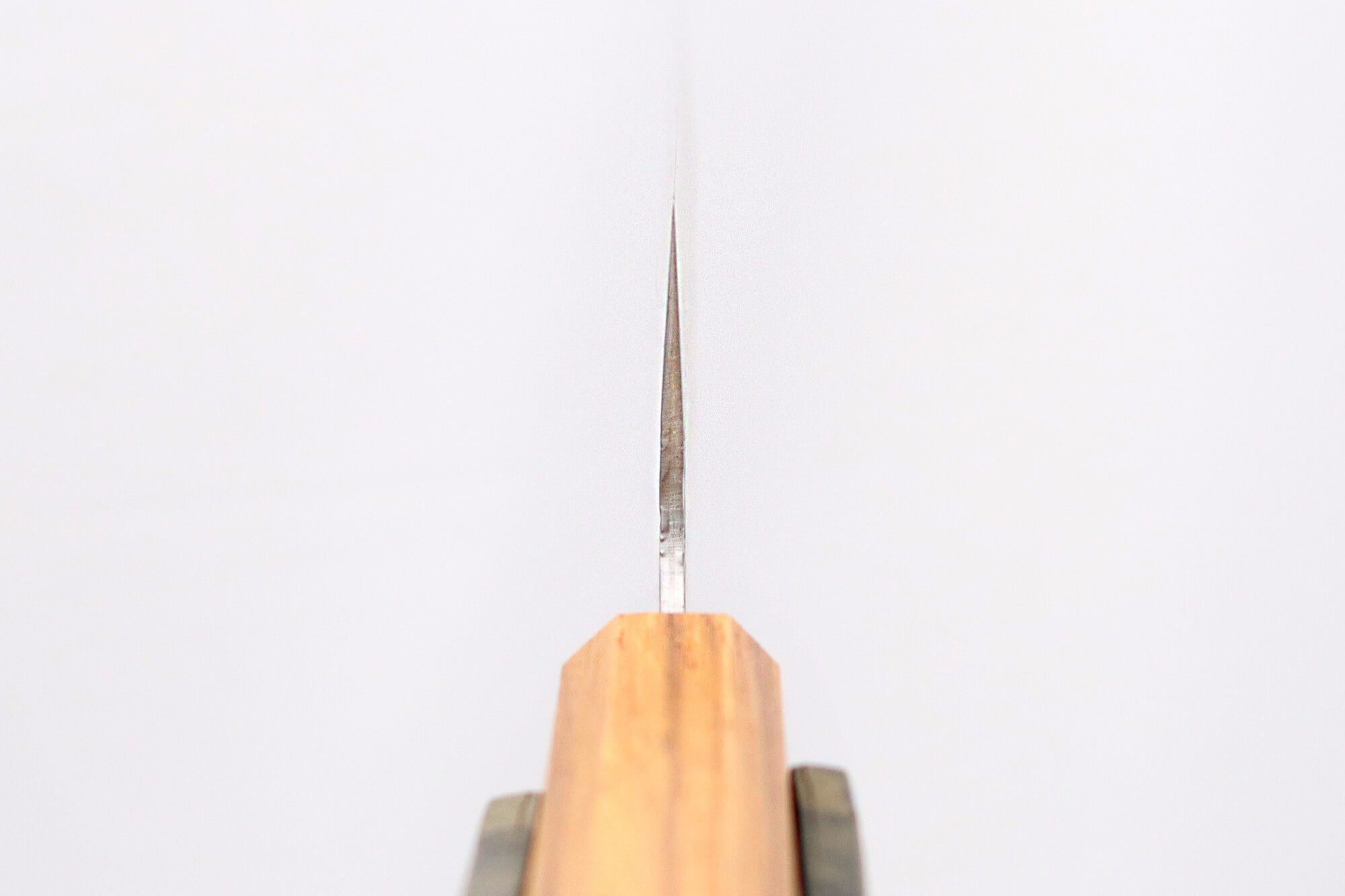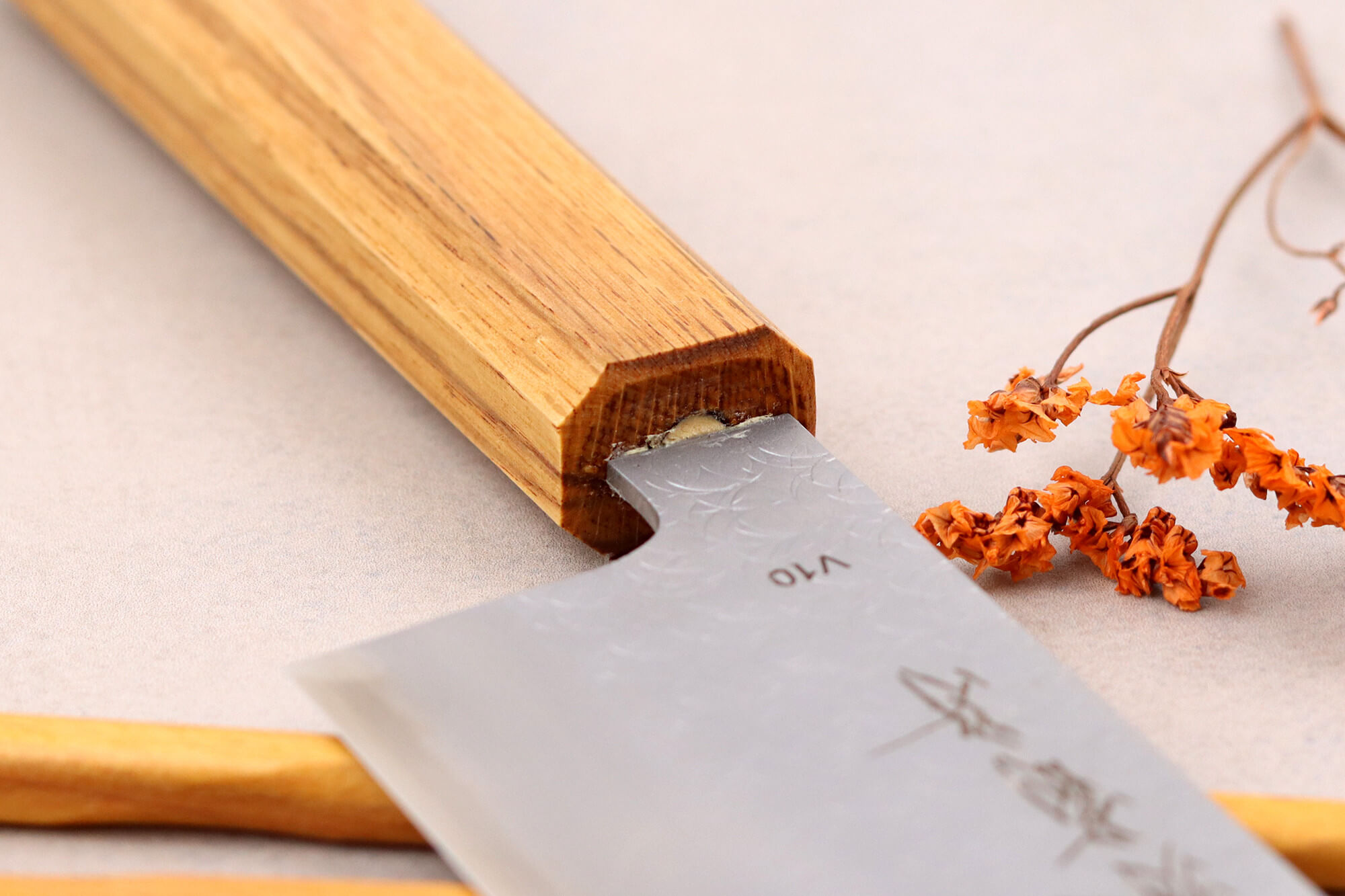 Ce manche, à la fois simple et efficace, reflète la volonté de Sakai Kikumori de proposer des outils de coupe sobres, performants et fidèles à la tradition artisanale japonaise !