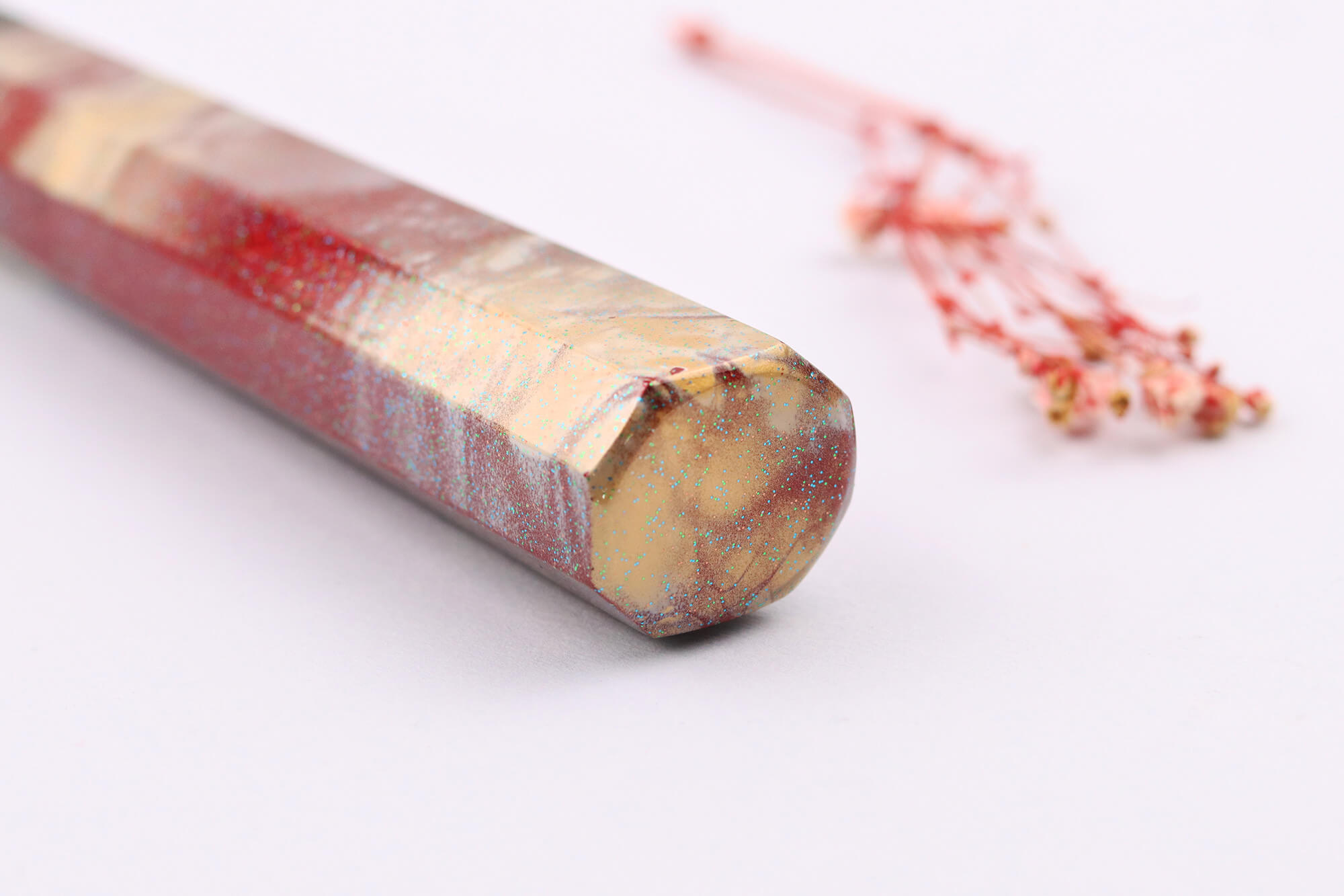 Laquage Urushi Kijiro : marbrage rouge et or pailleté